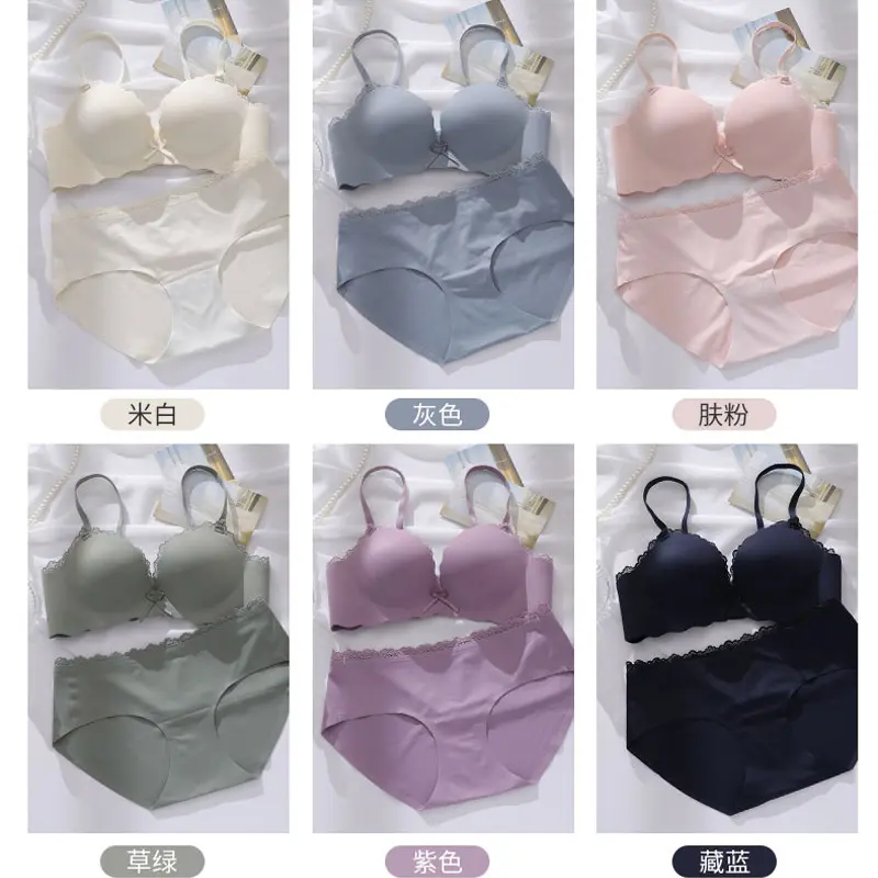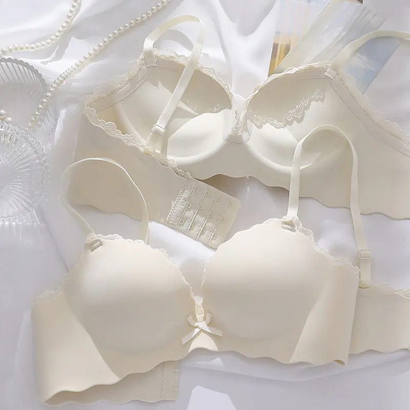 Women's Push Up Bra Small Chest Gathering Solid Color Thin One Piece Seamless Comfortable Teenage Wireless Padded Bra Set