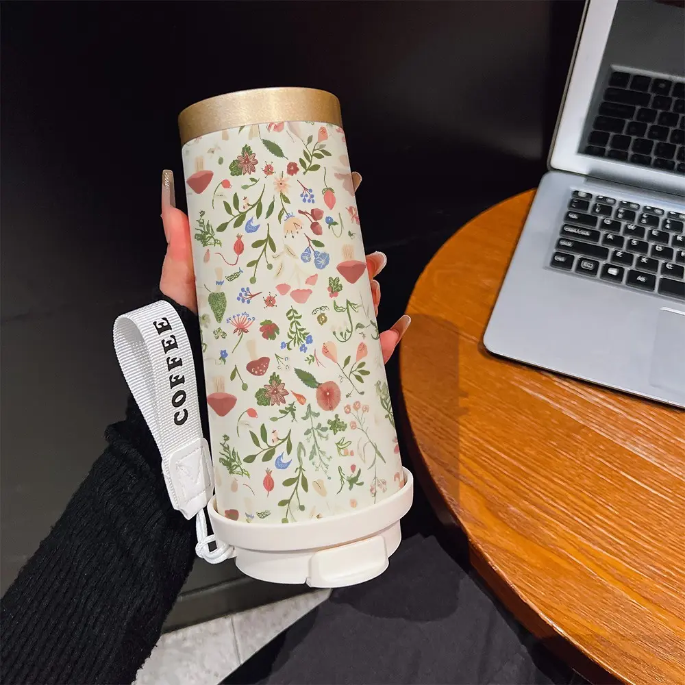 Abstract Flower Texture Coffee Cup, Portable Dual Drink Insulated Mug, Thermal Water Bottle, Cool Fashion, Office, Travel, Sports, Golf