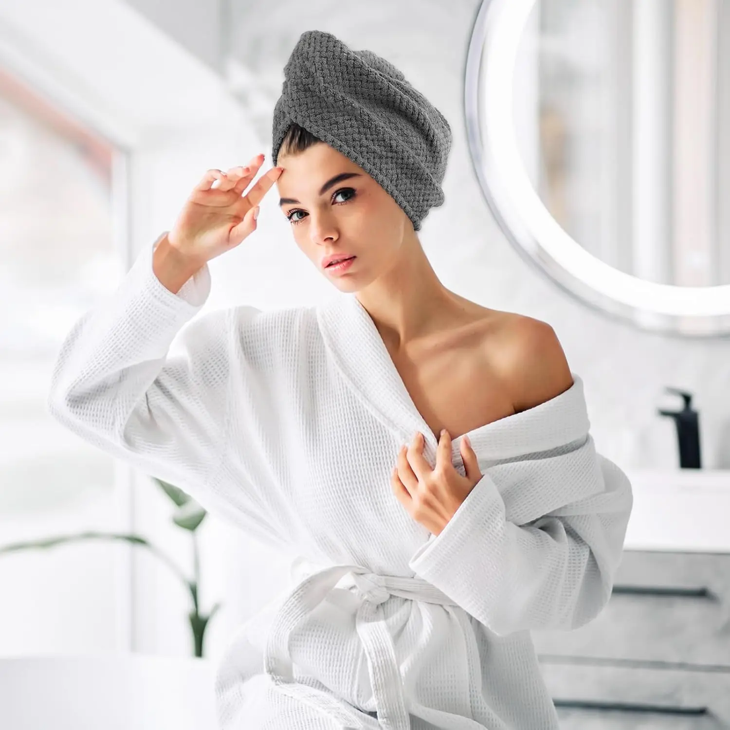 3 PCS Microfiber Hair Towel, Hair Wraps for Women Wet Hair, Fast Drying Hair Turban, Anti Frizz Head Towels Wrap for Curly Hair