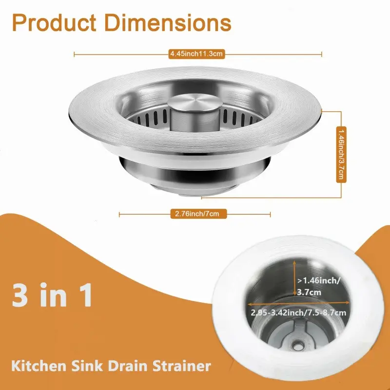 3-in-1 Kitchen Sink Drain Strainer, Deodorizing Anti-Clog Basket Strainer for US Standard 3-1/2 Inch Drains Removable Stainless Steel Sink Plug3-in-1 Kitchen Sink Drain Strainer, Deodorizing Anti-Clog Basket Strainer for US Standard 3-1/2 Inch Drains Removable Stainless Steel Sink Plug3-in-1 Kitchen Sink Drain Strainer, Deodorizing Anti-Clog Basket Strainer for US Standard 3-1/2 Inch Drains Removable Stainless Steel Sink Plug