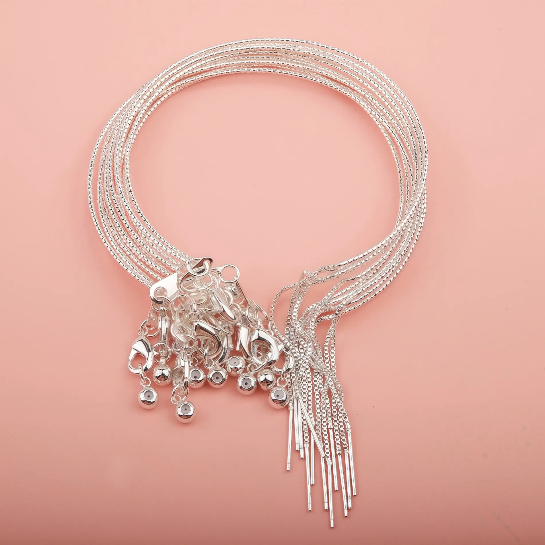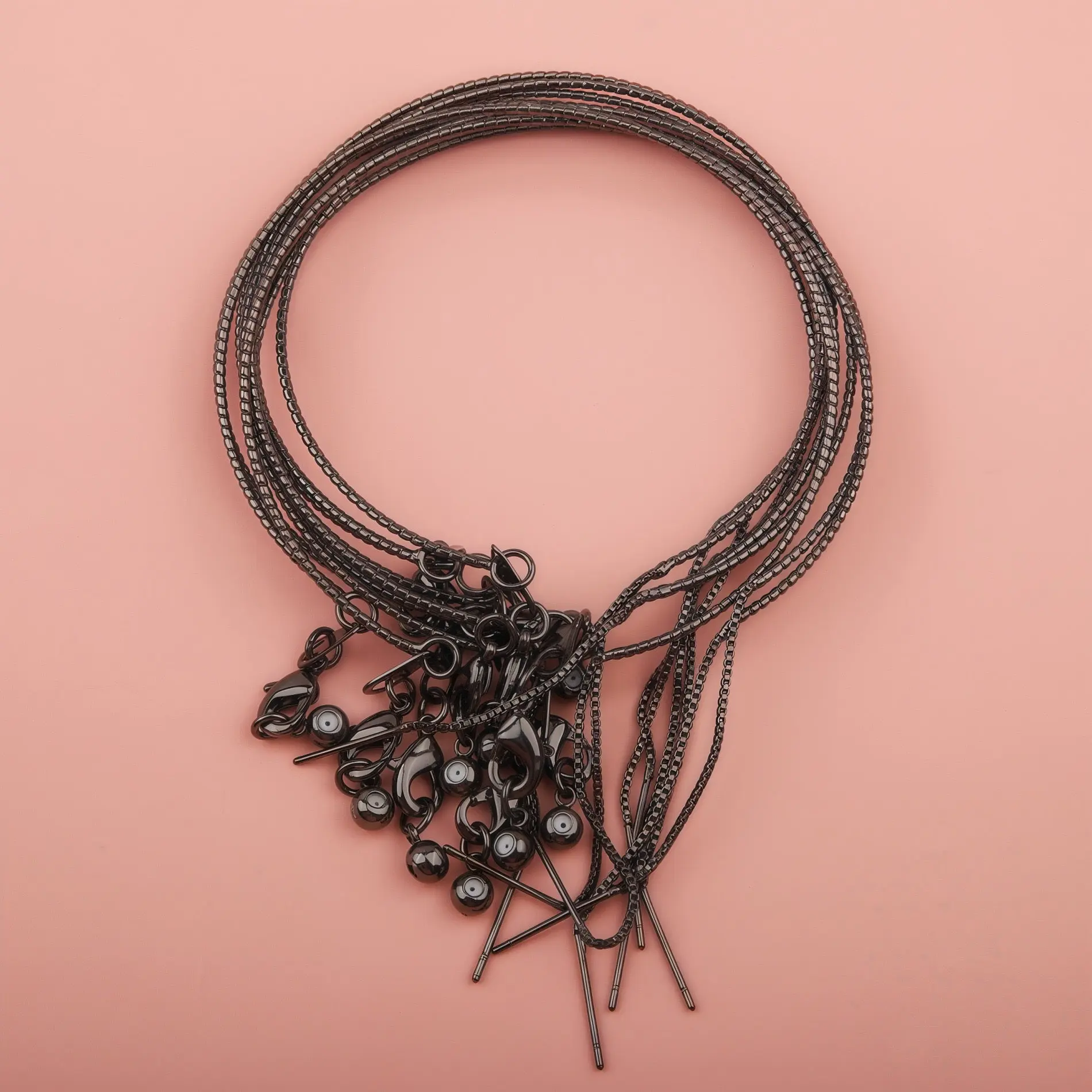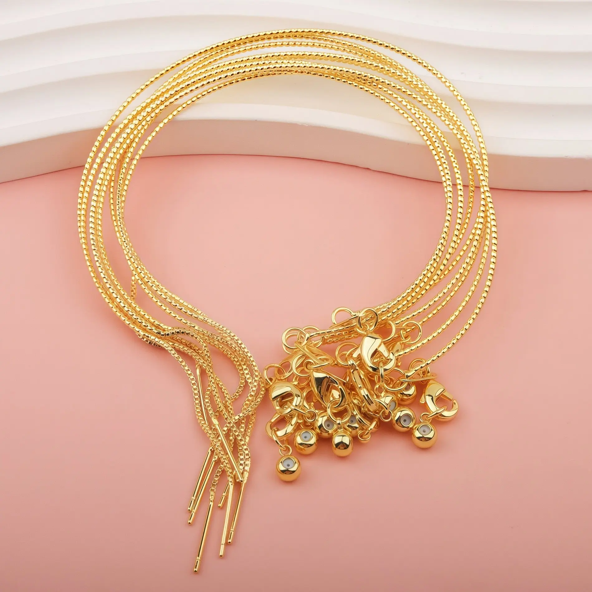 This versatile universal carved snake chain bracelet is designed for effortless DIY jewelry creation. It features a delicate, textured snake chain with fine carvings, a convenient thread-through needle end for easy bead insertion, a secure lobster clasp, and an adjustable slider bead to ensure a perfect fit for any wrist size. Available in multiple finishes—gunmetal black, rose gold, silver, gold, and a multicolor set—this bracelet combines durability, style, and flexibility, making it ideal for everyday wear, layering, or crafting personalized pieces.