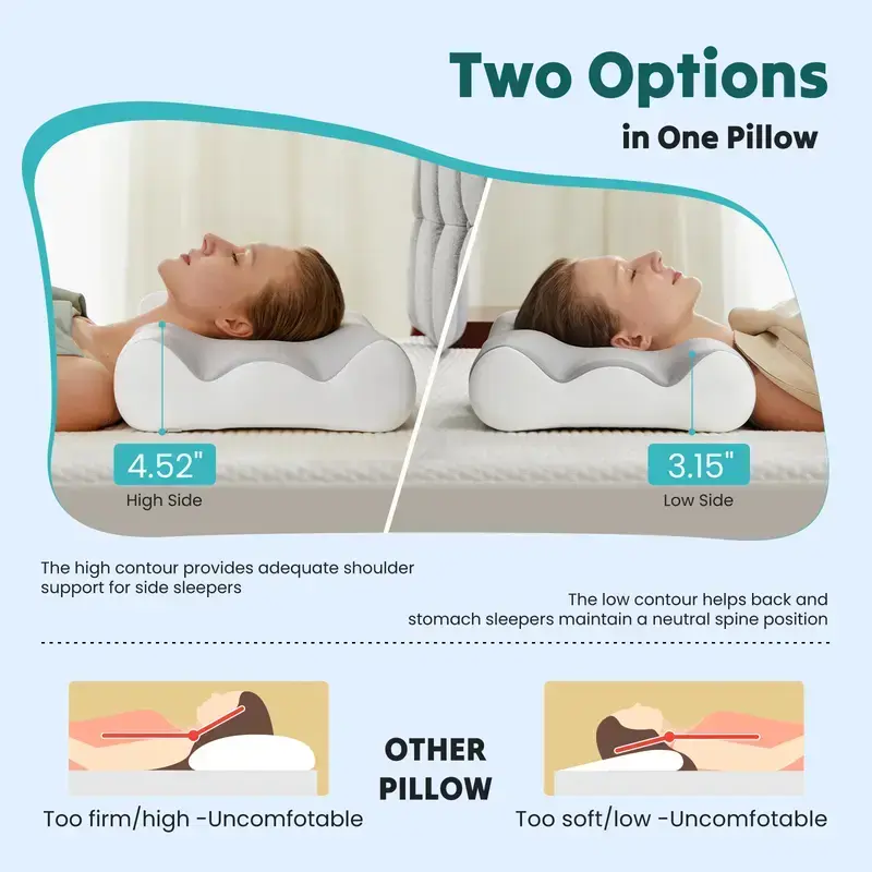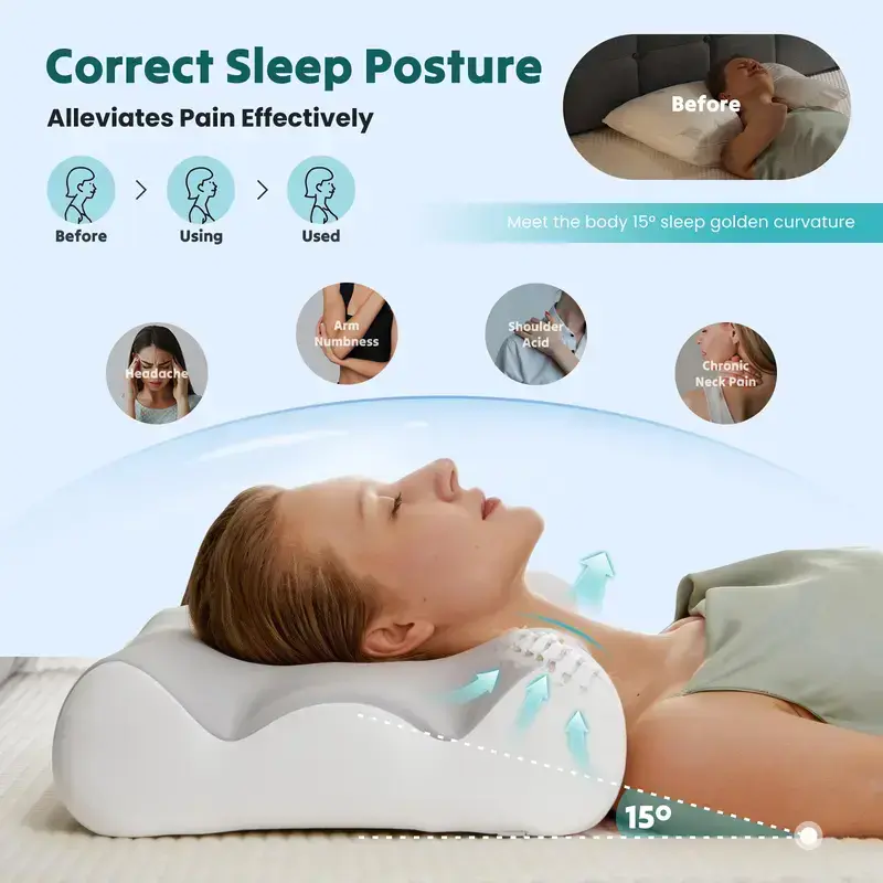 Scientifically engineered to support the natural curve of your neck and spine. It provides targeted relief for head, neck, shoulder, and back pain. This pillow is your solution for a comfortable night's sleep.