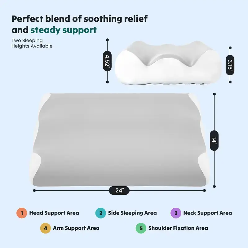 Two ergonomic height options allow you to customize your comfort. Integrated arm grooves relieve shoulder pressure for side sleepers, enhancing your sleep experience.