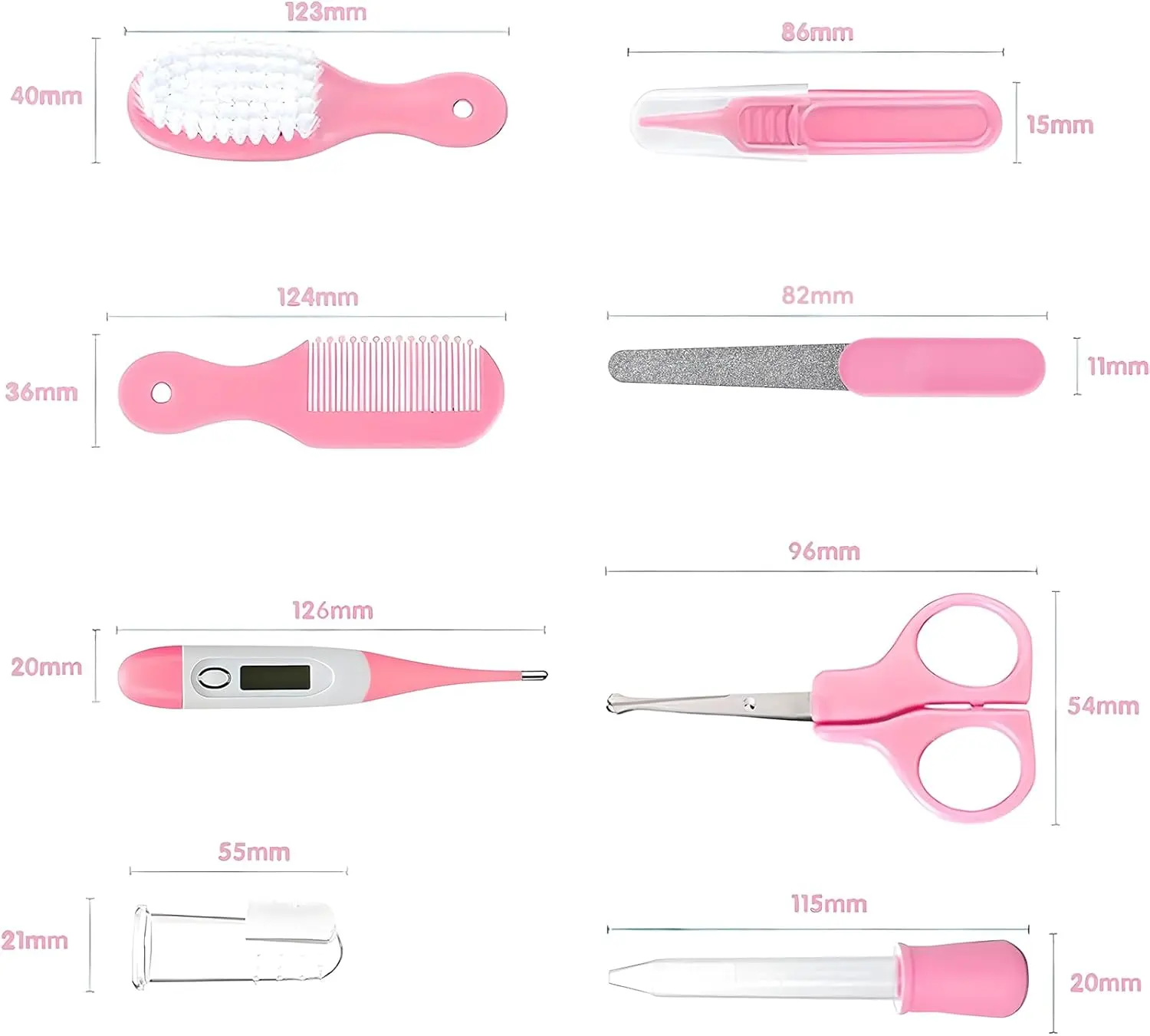 ·Safe Baby Grooming Kit: In order to make every baby always get good grooming and health, we designed this grooming kit. The baby care kit are made of high quality stainless steel and BPA-free plastic, and it is safe to use to reassure parents.