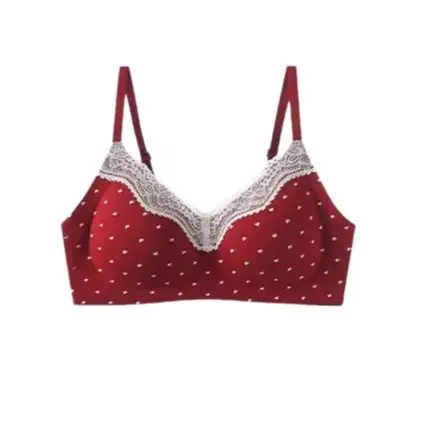 Lace Pure Cotton Underwear for Women Thin Small Chest Sweet Comfortable Red Desire Seamless Student Bra Set