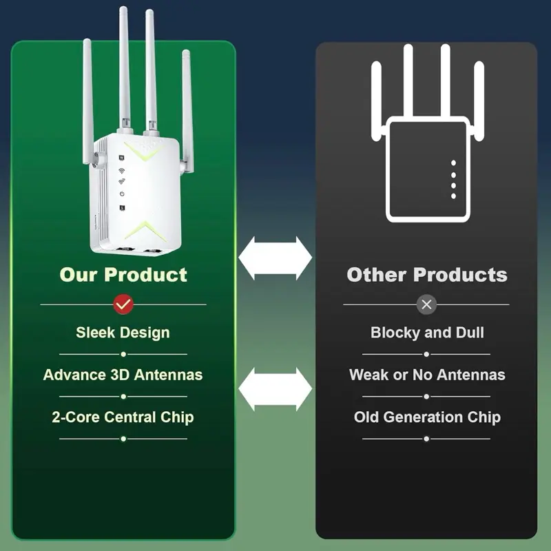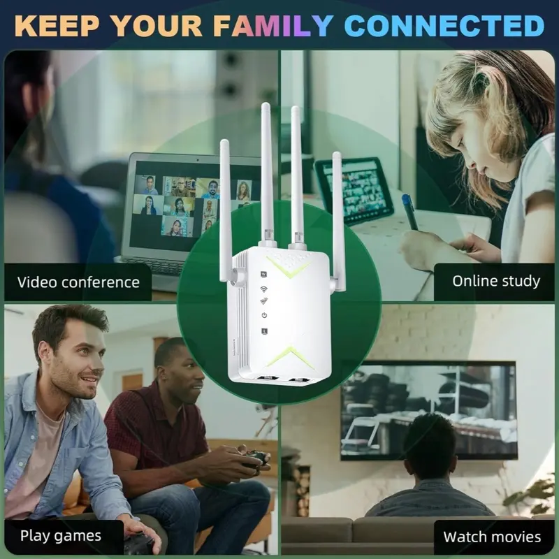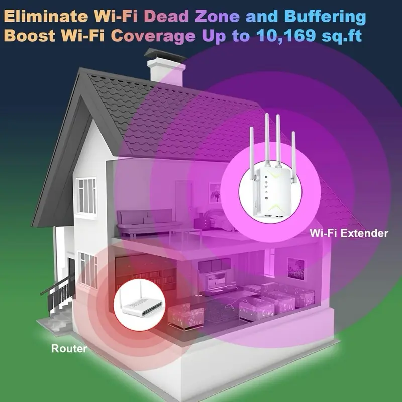 • Conquer every corner! Our WiFi extender blankets your entire home, garage, and yard in a powerful, seamless signal up to 12,000 sq ft, eliminating frustrating dead zones for good