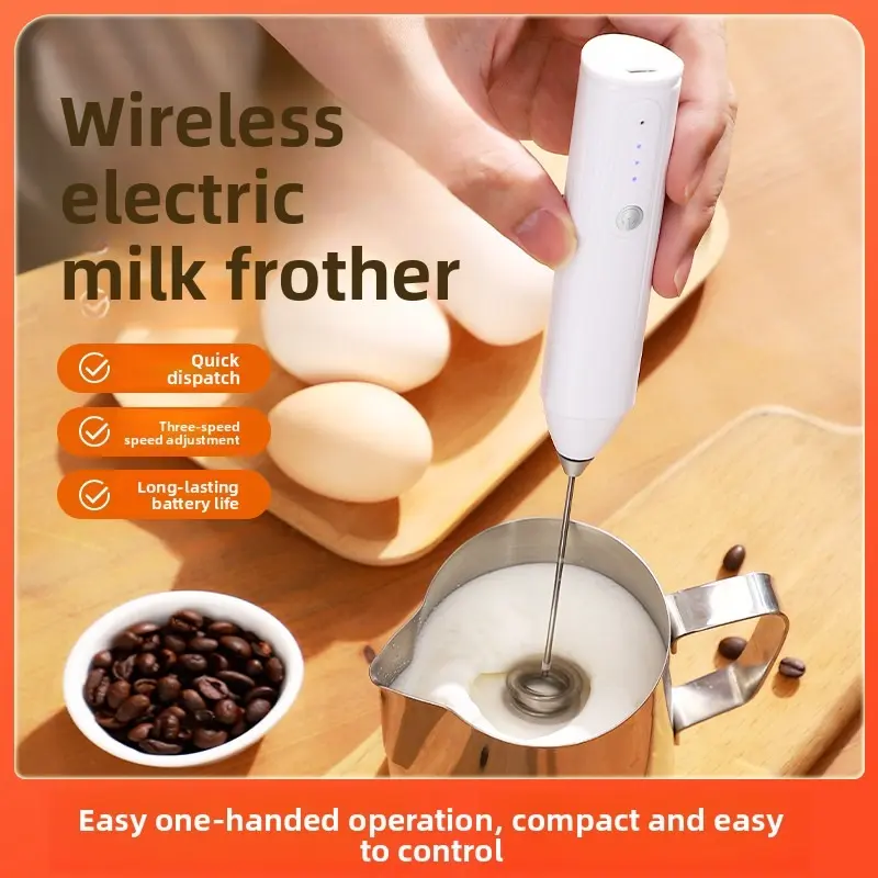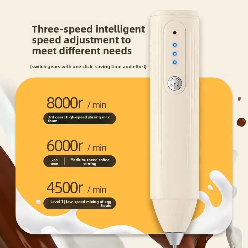 Electric Milk Frother Handheld with 3-Speed Adjustable Whisk, Fast Frothing Coffee Tools, Portable Wireless Foam Maker for Hot & Cold Drinks