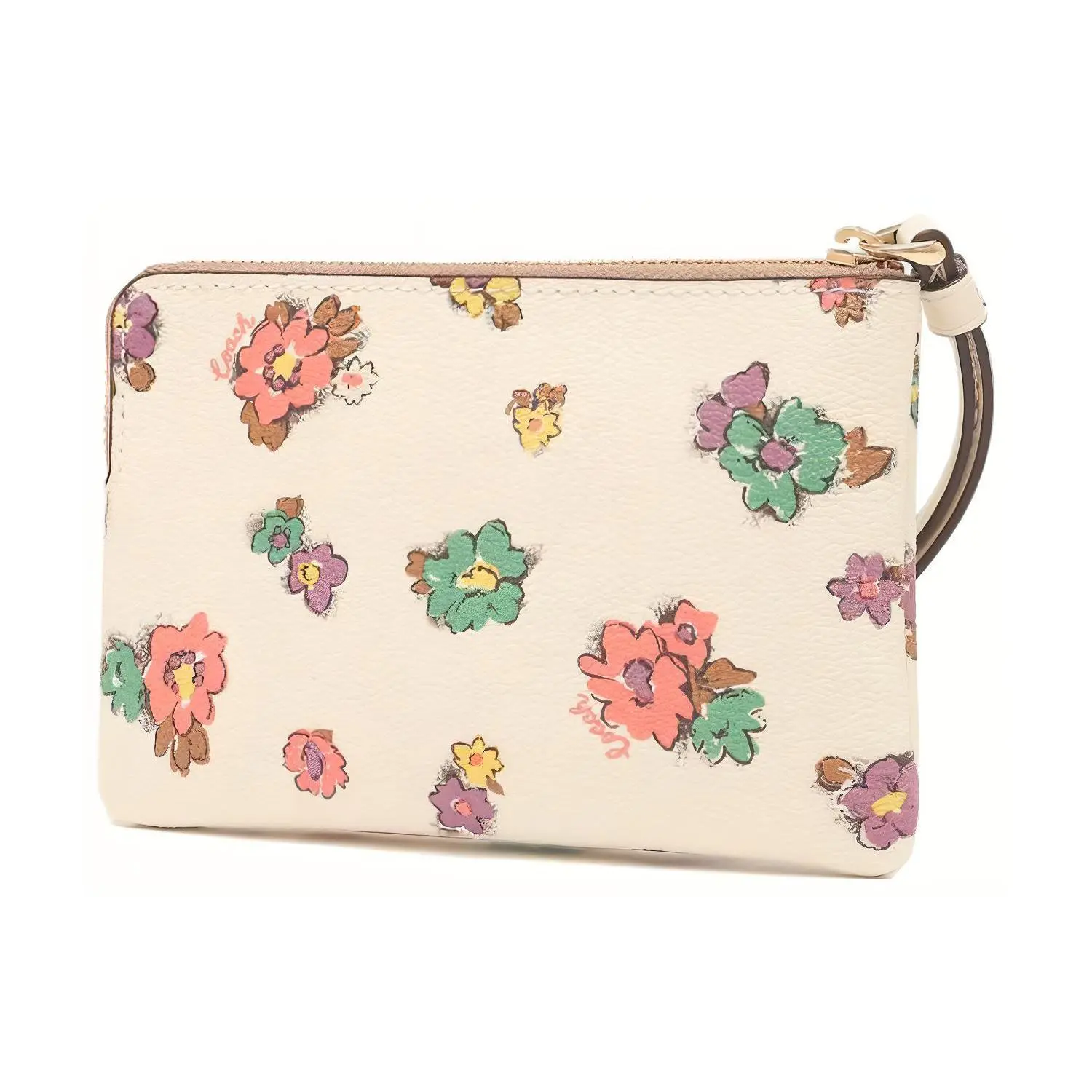 COACH Corner Zip 16 Floral Print Wristlet Clutch (Small, Women's, White)