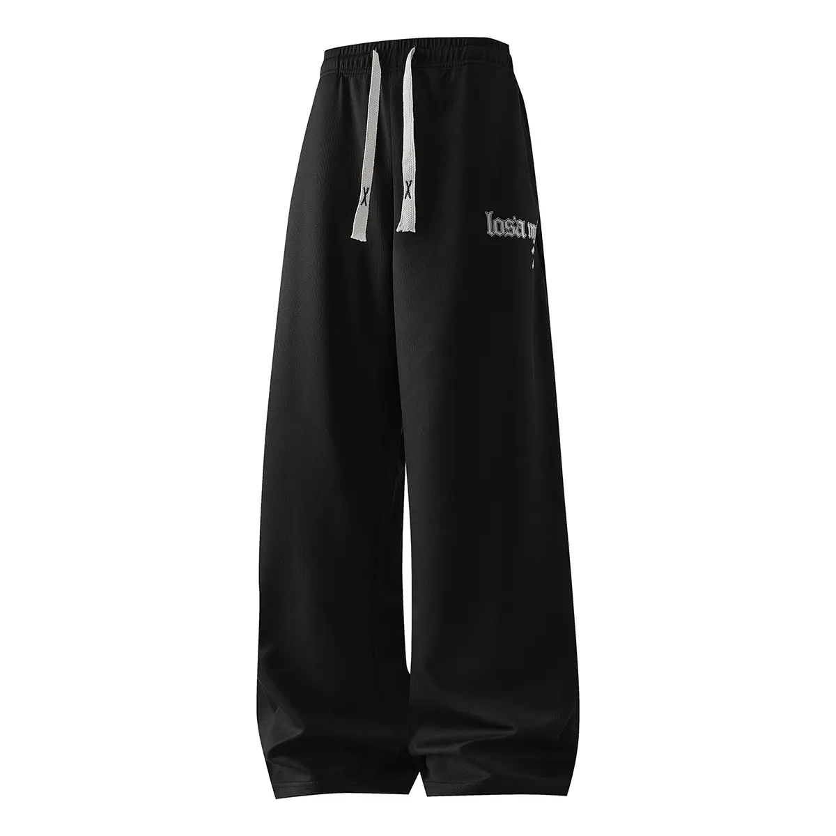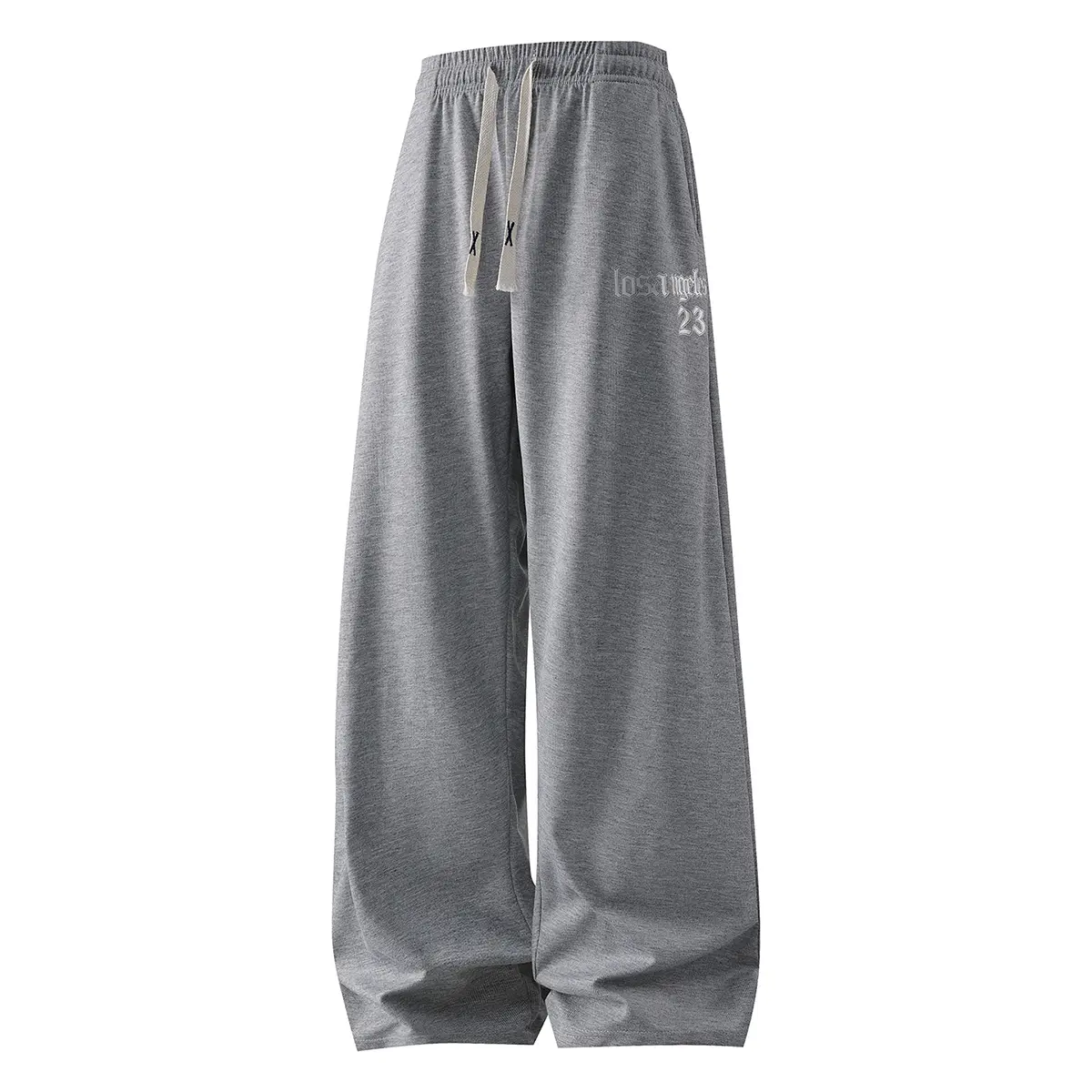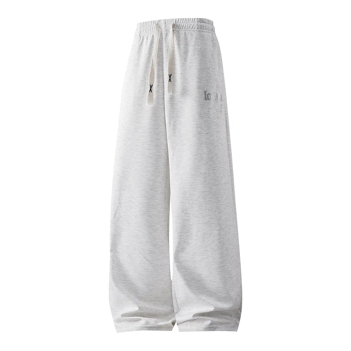 Cloud-Soft Loungewear Mens Heather Grey Baggy Wide Leg Sweatpants Casual Drawstring Elastic Waist Relaxed Fit Trousers with Gothic Letter Print for Home Relaxation and Daily Wear