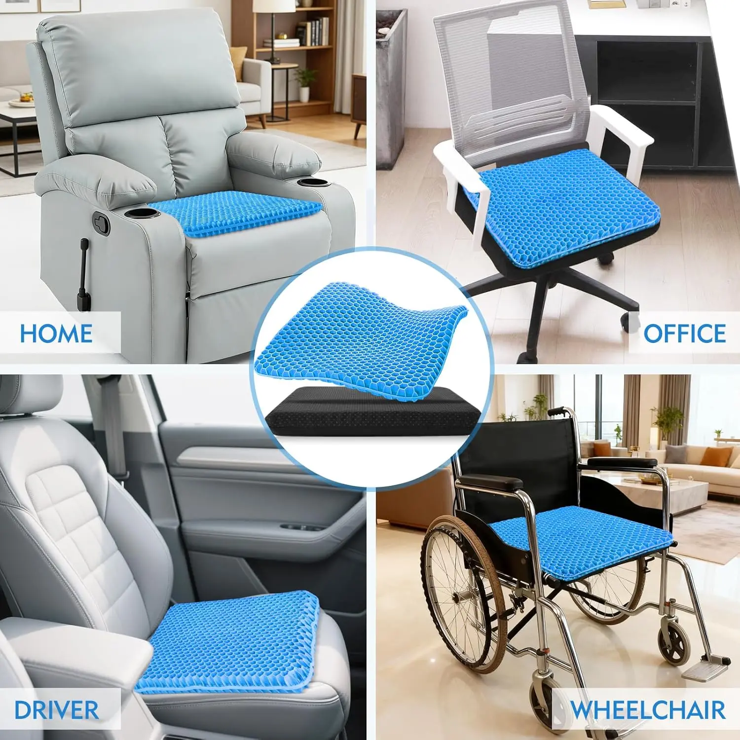·【Soft & Breathable】This Honeycomb Gel Seat Cushion delivers exceptional elasticity and breathability, while its unique structure actively reduces pressure.Its adaptive air columns cradle your body with remarkable softness, yet provide firm support where you need it most. it effectively distributes weight to minimize discomfort and fatigue.The honeycomb design promotes natural airflow, keeping you cool and reducing sweat buildup even during long drives or work sessions. Say goodbye to sticky, overheated discomfort—and hello to truly relaxed sitting.