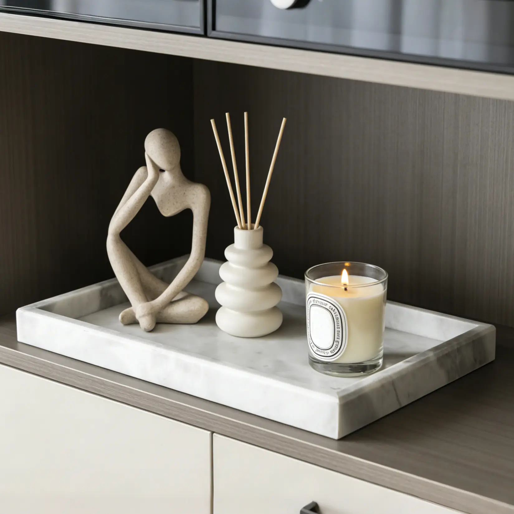 The smoothly polished surface feels luxuriously smooth, while genuine marble construction ensures exceptional stability. Naturally resistant to water and stains, this decorative tray cleans effortlessly with a damp cloth. Unlike synthetic materials, genuine marble develops character over time, making it a cherished organizer for years to come. Transform your space with 's timeless sophistication.