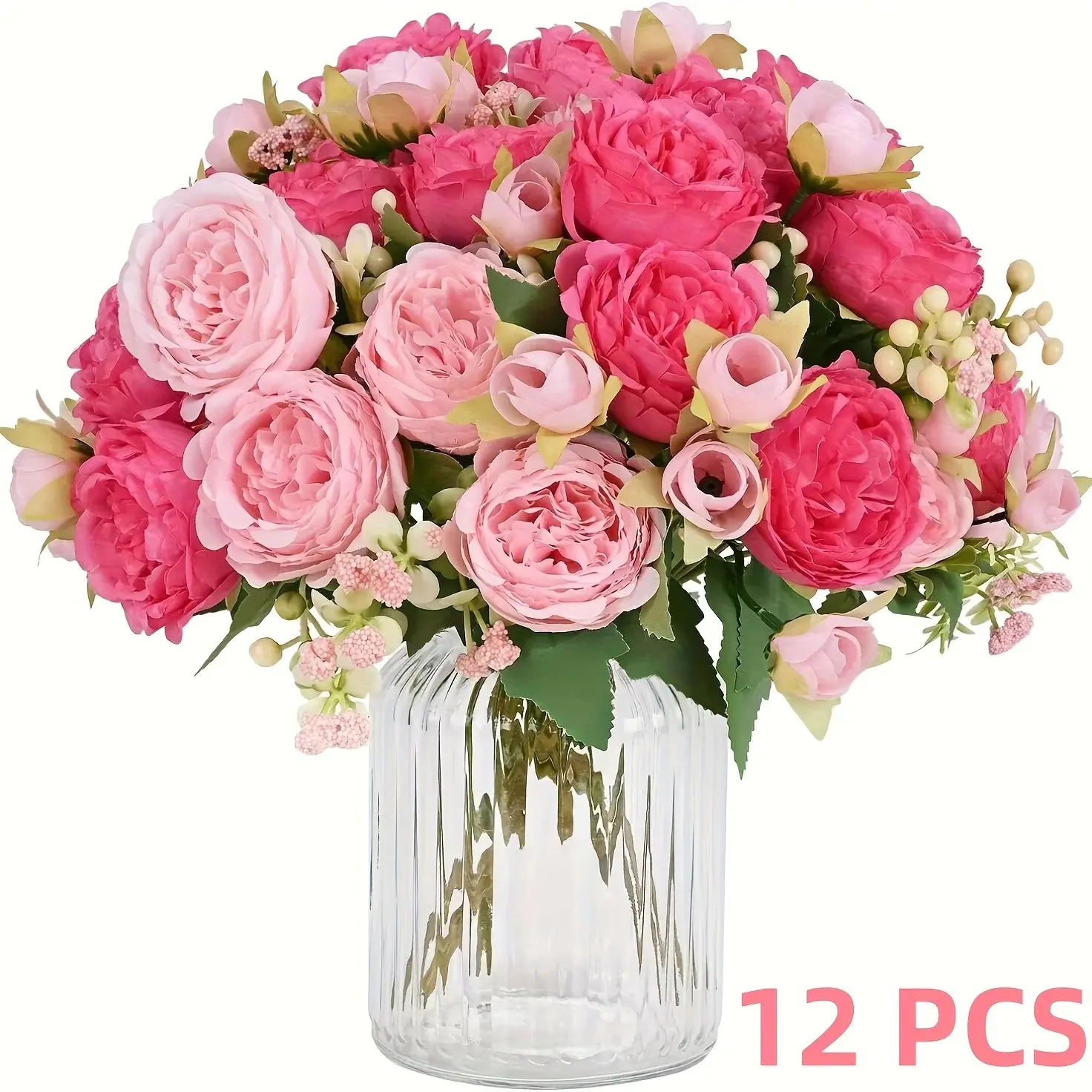 12 Packs Artificial Peonies Flowers Faux Peonies Spring Bouquet for Centerpiece, Table, Wedding, Party Home Decoration
