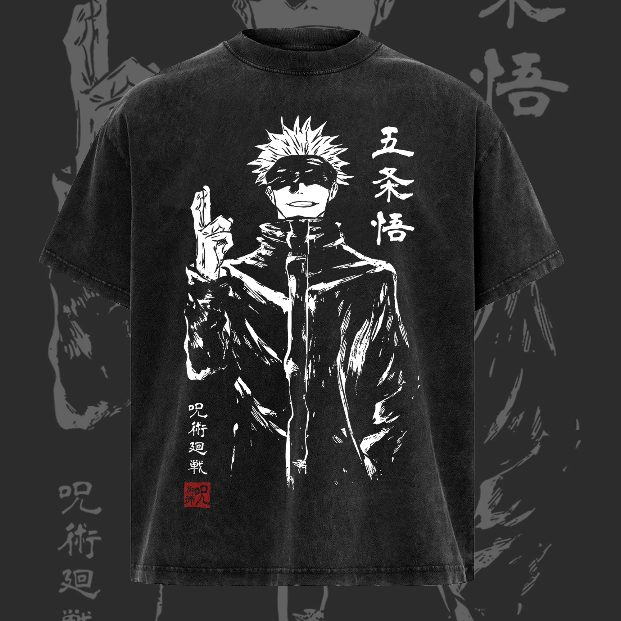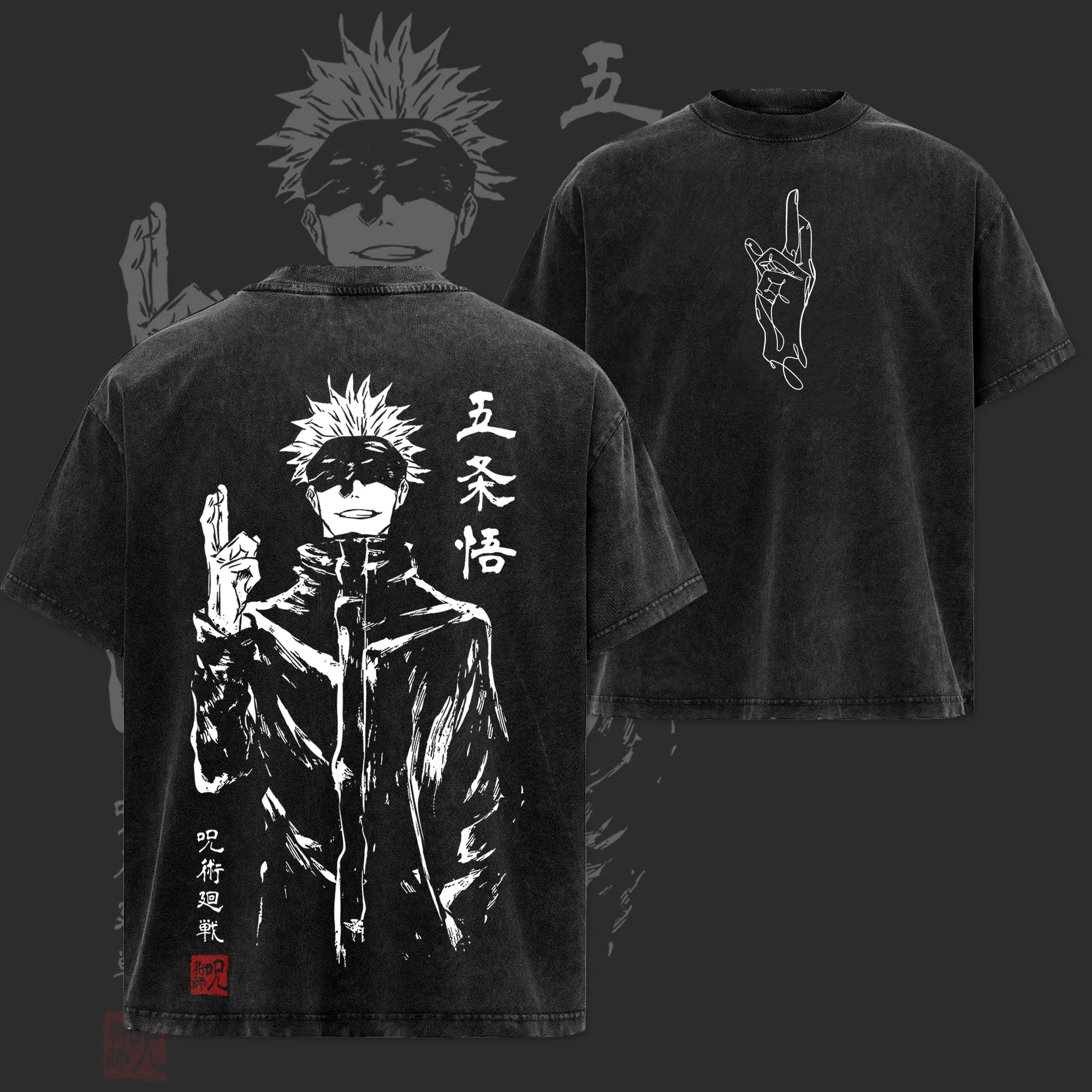 Gojo Satoru – Jujutsu Kaisen Tee Washed - Hoodie Vintage Oversized Heavy Cotton Anime Manga T-Shirt, Double Printed Retro Unisex Streetwear Graphic Top, Summer Outfits, Gift For Him Her