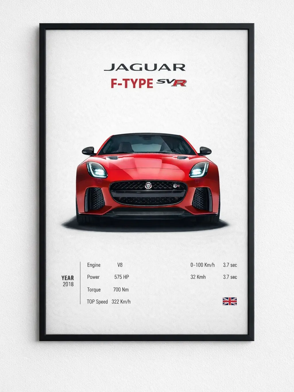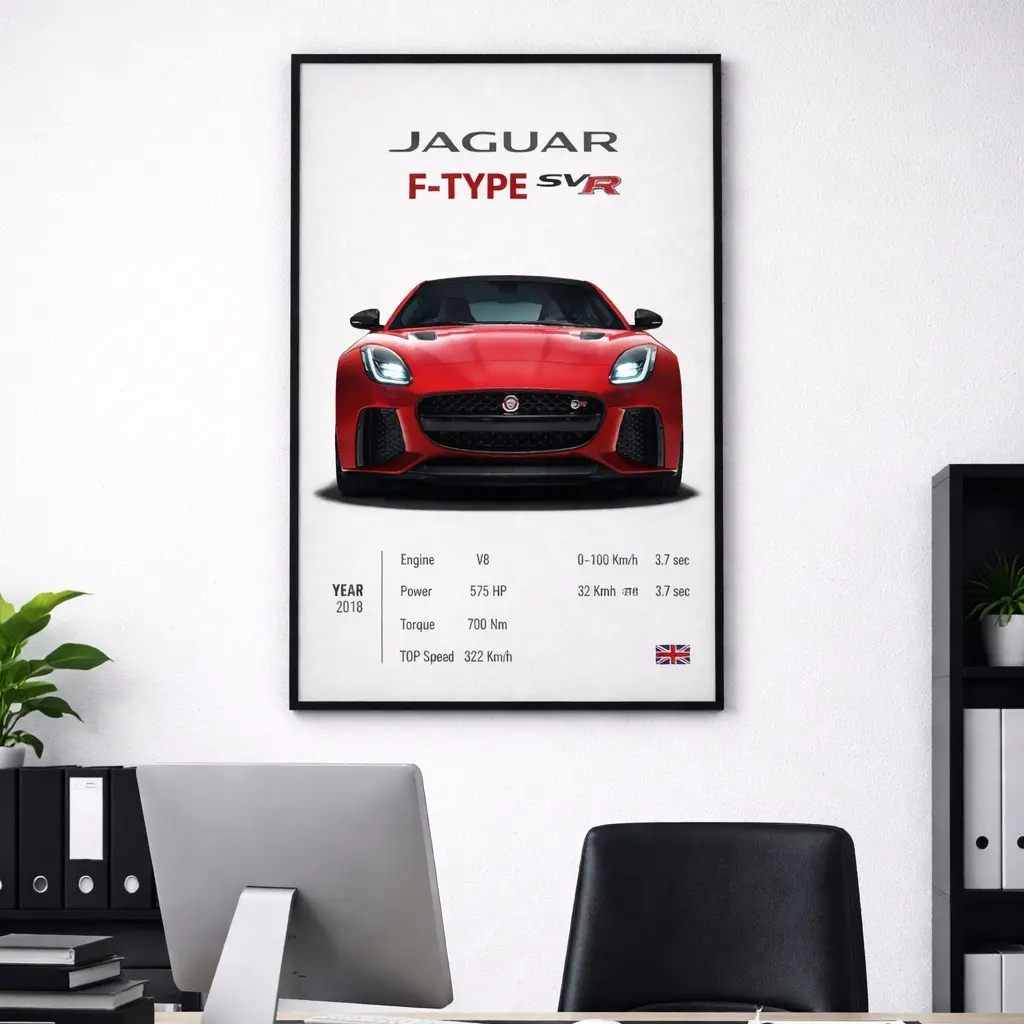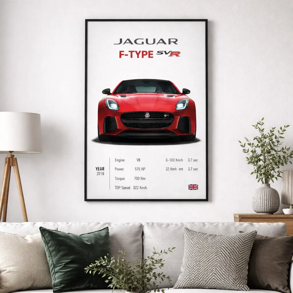 Jaguar F Type SVR Poster Decor Luxury Print Wall Art Decor For Home Bedroom With Black Frame-Size:12x18in