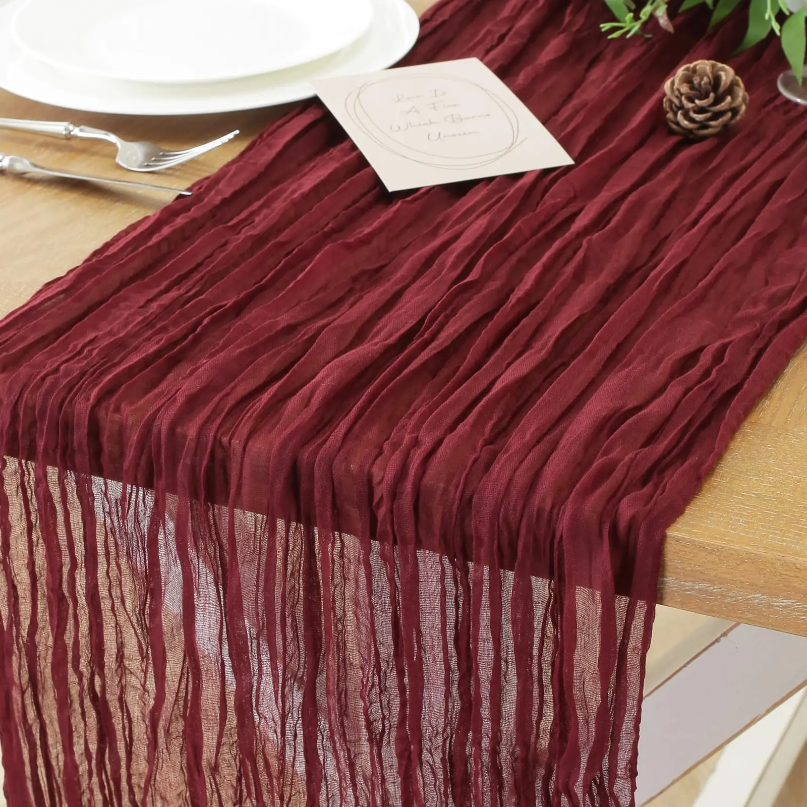 Pleated Gauze: Crafted from pleated gauze, this runner offers a delicate and airy look. It enhances the aesthetic of any table setup.