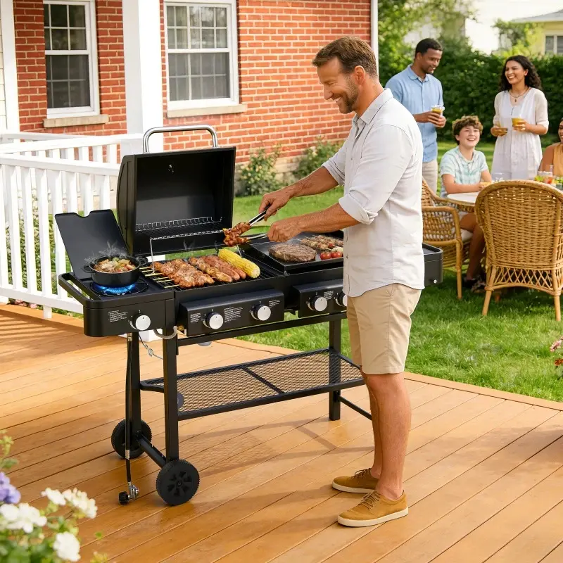 Overseas Stock All-in-One Propane Gas Grill with Grilling & Griddling Functions 745 Sq.Inch Cooking Space