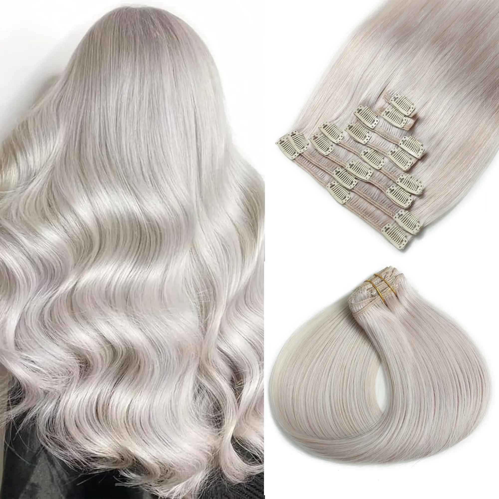 ·Product Type: 8-piece clip-in hair extension set in Platinum Silver shade