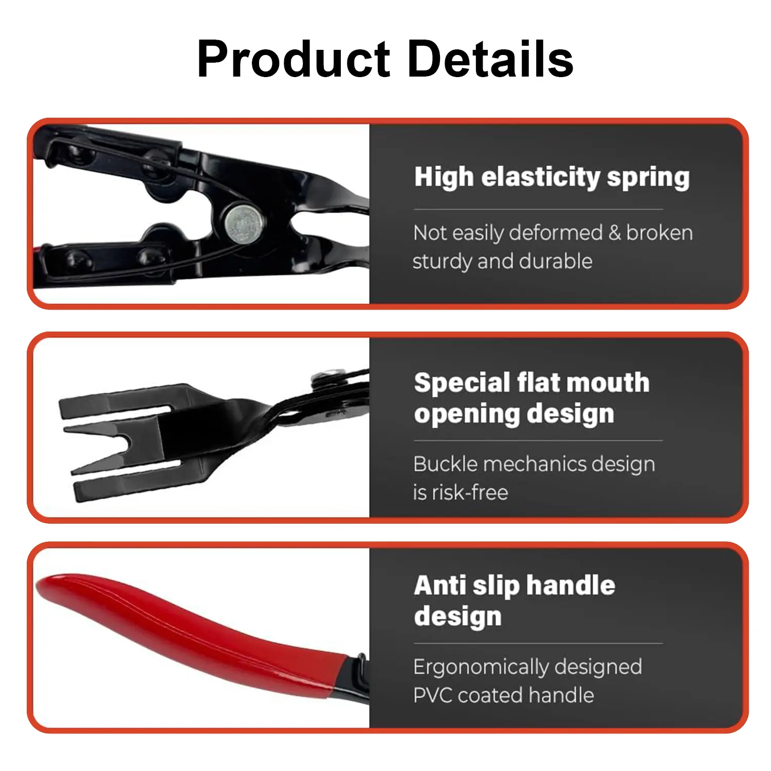 ·Wide Application: Ideal for automotive and furniture repairs, these pliers are perfect for removing tires, pin pullers, and various clamps. Commonly used for car audio installation, door panel adjustments, and interior restoration.
