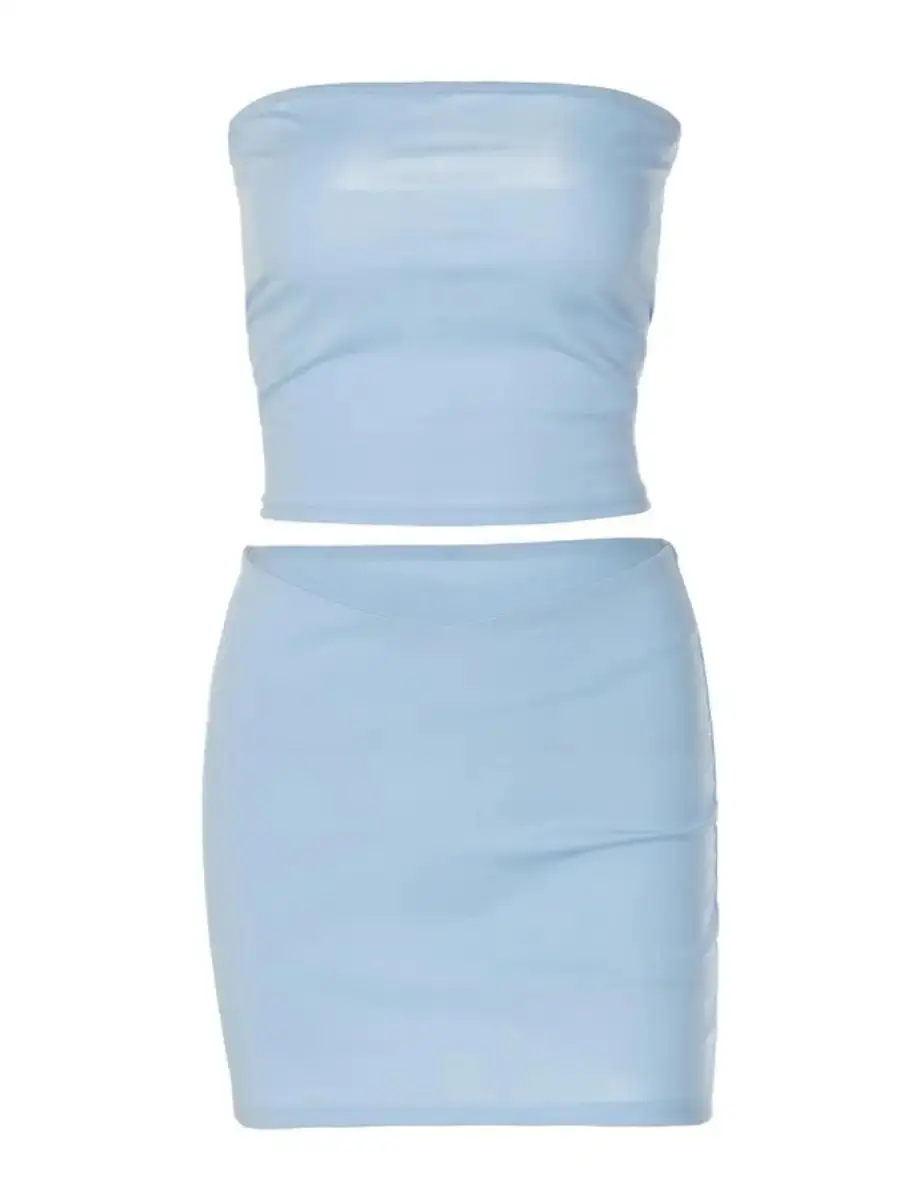 Two-Piece Set Women's Solid Crop Ruched Tube Top & Bodycon Mini Skirt Set, Sleeveless Strapless Backless Top & Skirt Set for Party Club Dating, Ladies Summer Clothes, Summer Outfits 2025