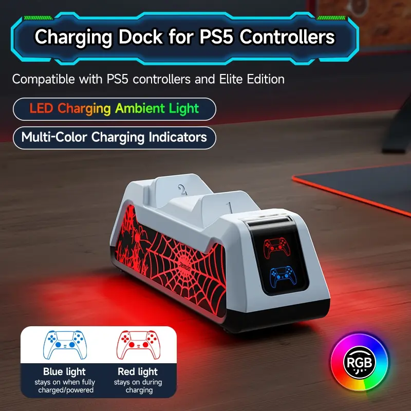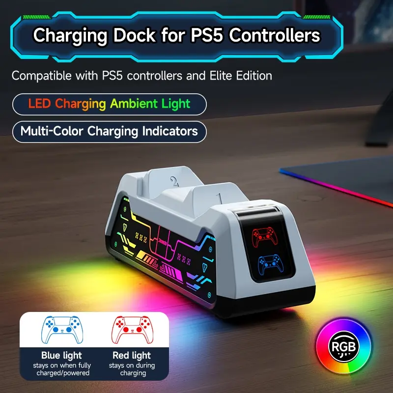 Charging Base for PS5 Controller, Dual Charging Base, Smart LED Indicator Charging Station, Durable & Dirt-resistant Console Accessories