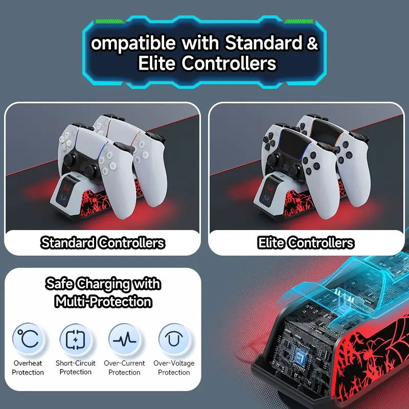 【Dual Controller Support】: Simultaneously charge two controllers designed for PlayStation 5, enhancing your gaming experience without interruptions.