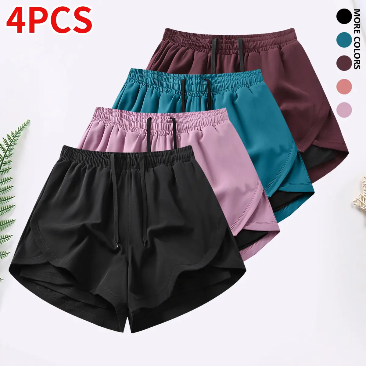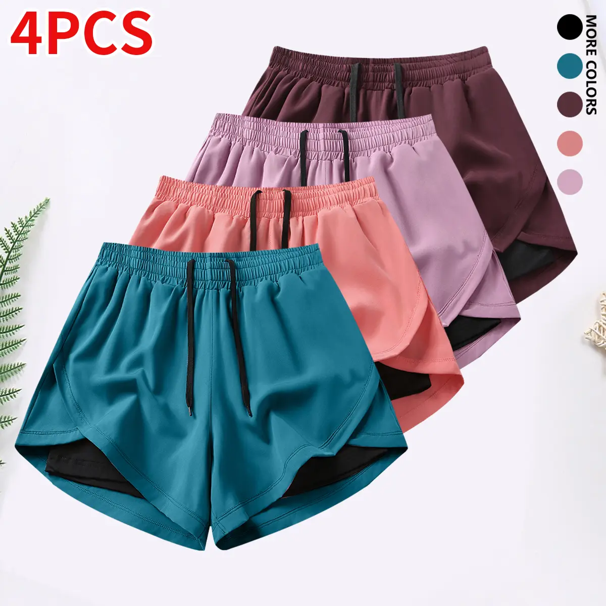 4-piece set: women’s casual athletic shorts outfit with built-in lining, drawstring, and elastic waistband — suitable for outdoor sports, fitness, running, and casual wear; women’s summer shorts bottoms.