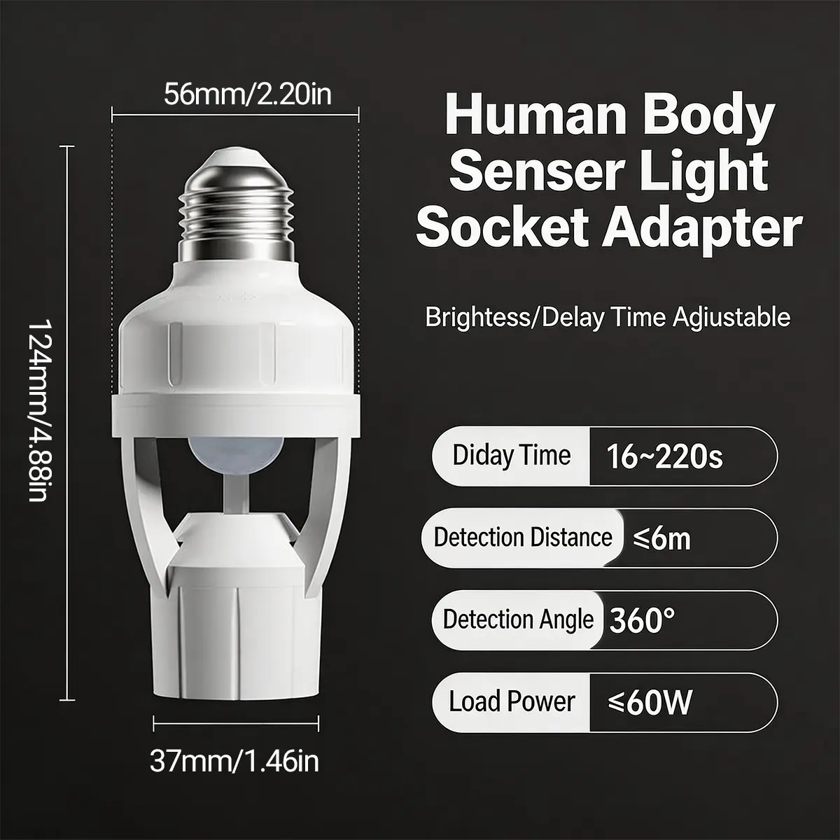 Works with LED, incandescent, energy-saving lamps – max 60W.