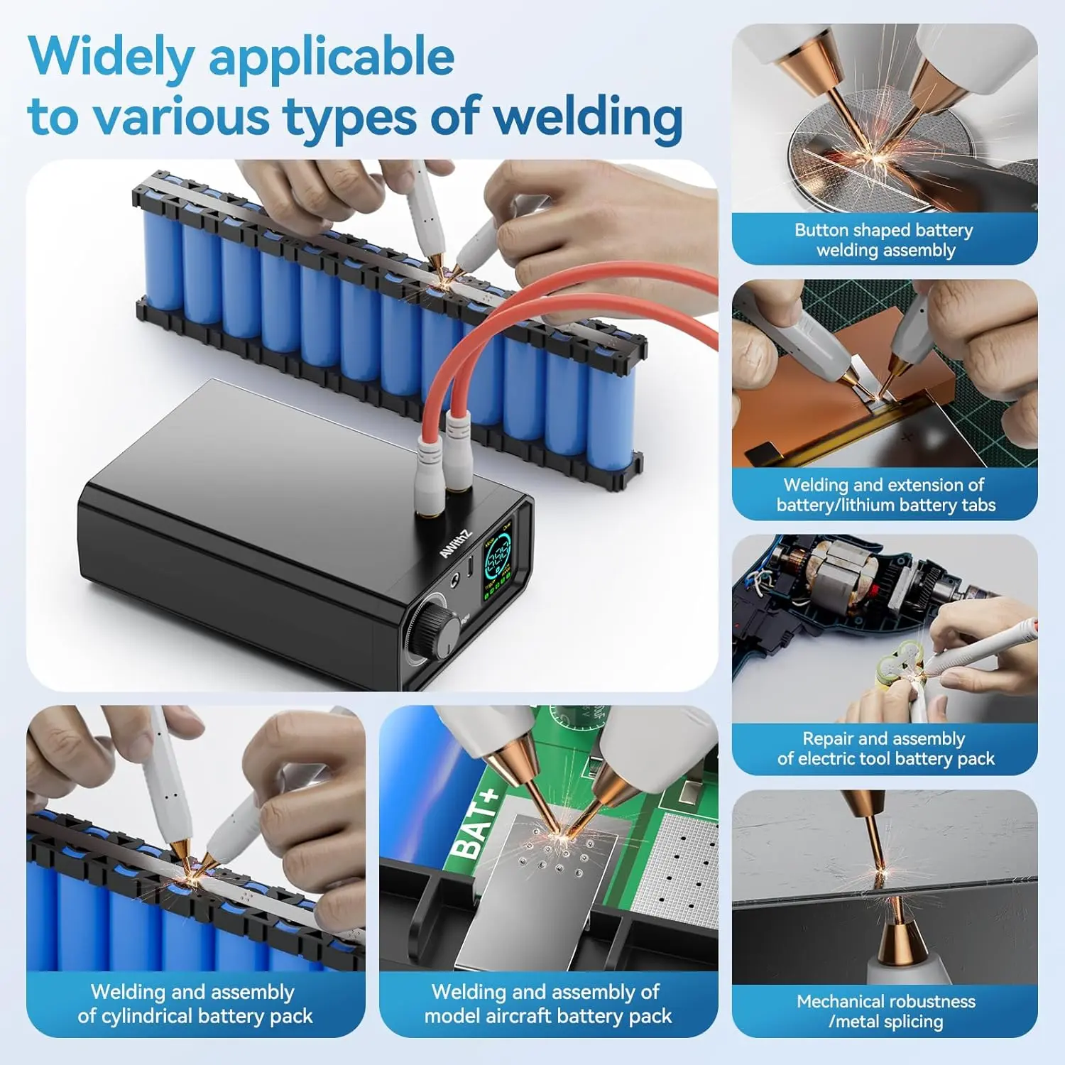 Two types of Trigger Flexibility & Safety: Seamlessly switch between hands-free foot pedal operation and precise hand control (Trigger) for versatile workflows and enhanced safety when handling sensitive batteries.Intelligent Thermal Protection: Built-in safety monitors battery temperature (Cont), automatically halting welding (Trigger disable) and alerting you if overheating is detected, preventing damage.If there is no operation for 8 minutes, the spot welder will automatically shut down.Ultra-Low Power Consumption: Engineered for exceptional energy efficiency , significantly extending standby time between uses and reducing operational costs.Precision 100-Level Power Control: Fine-tune welding strength for delicate tasks (like phone/bluetooth batteries) or robust jobs (cylindrical power cells) with our intuitive rotary knob.Multi-Mode Welding for Diverse Batteries: Expertly weld cylindrical power batteries, mobile phone batteries, and Bluetooth batteries (Mode) with tailored settings accessible via the clear control panel.Simple Rotary Knob Operation & Clear Interface: Effortlessly adjust settings (Gear, Trigger Time, Mode, Number of continuous spot welds) using the large rotary knob and clearly labeled control panel for ultimate user-friendliness.