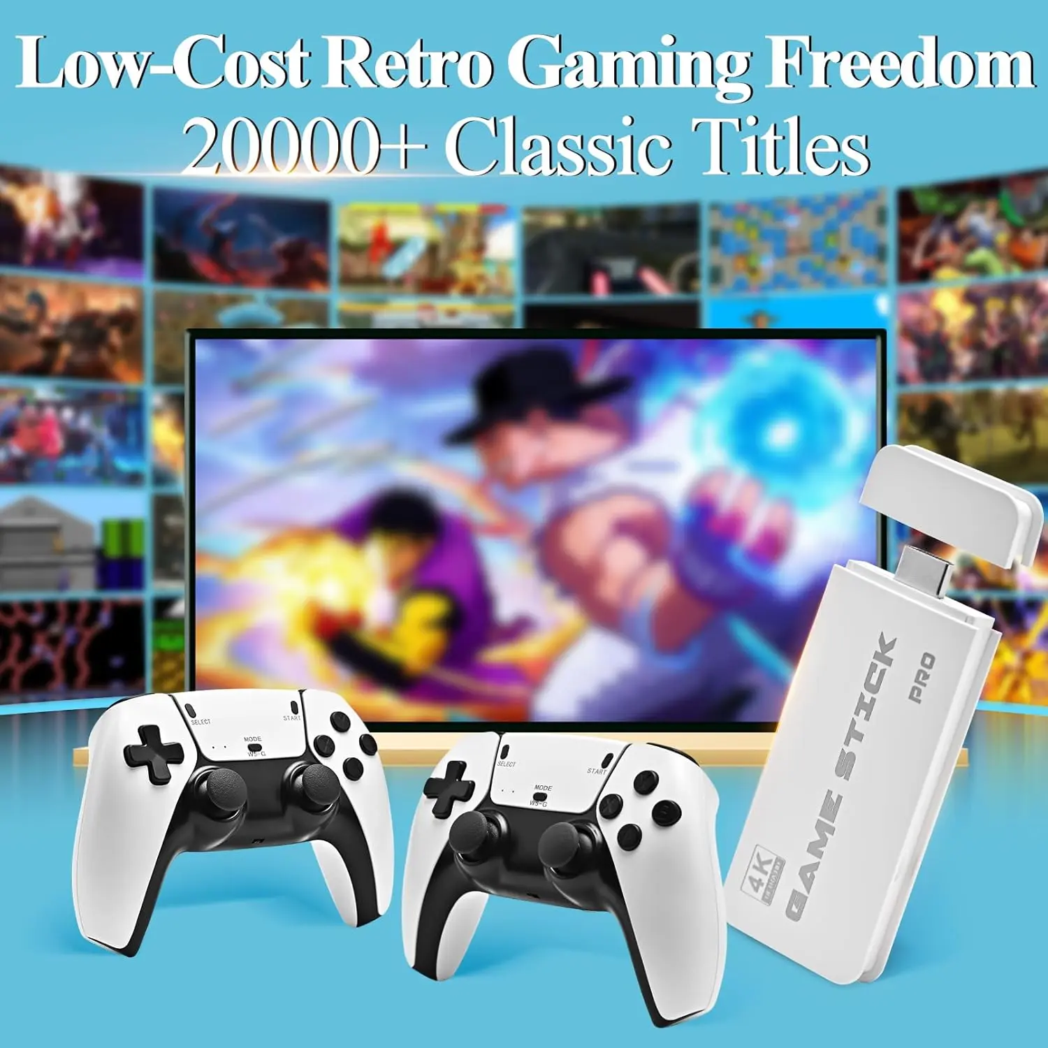 Retro Game Console with 20000+ Built-in Games, Mass Games, 19 Emulators 2 Wireless Controllers 4K Output & 64GB SD Card Perfect for Kids & Adults - Portable Gaming System