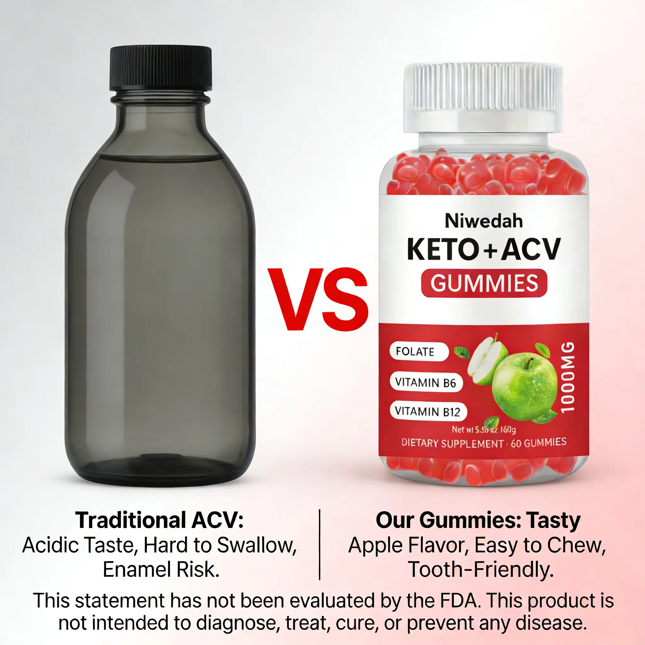 Looking for a simpler way to incorporate the benefits of Apple Cider Vinegar into your busy lifestyle? Say goodbye to the harsh taste of liquid ACV and hello to a delicious, apple-flavored routine. Our Niwedah Keto + ACV Gummies are formulated to support your wellness goals without the burn.