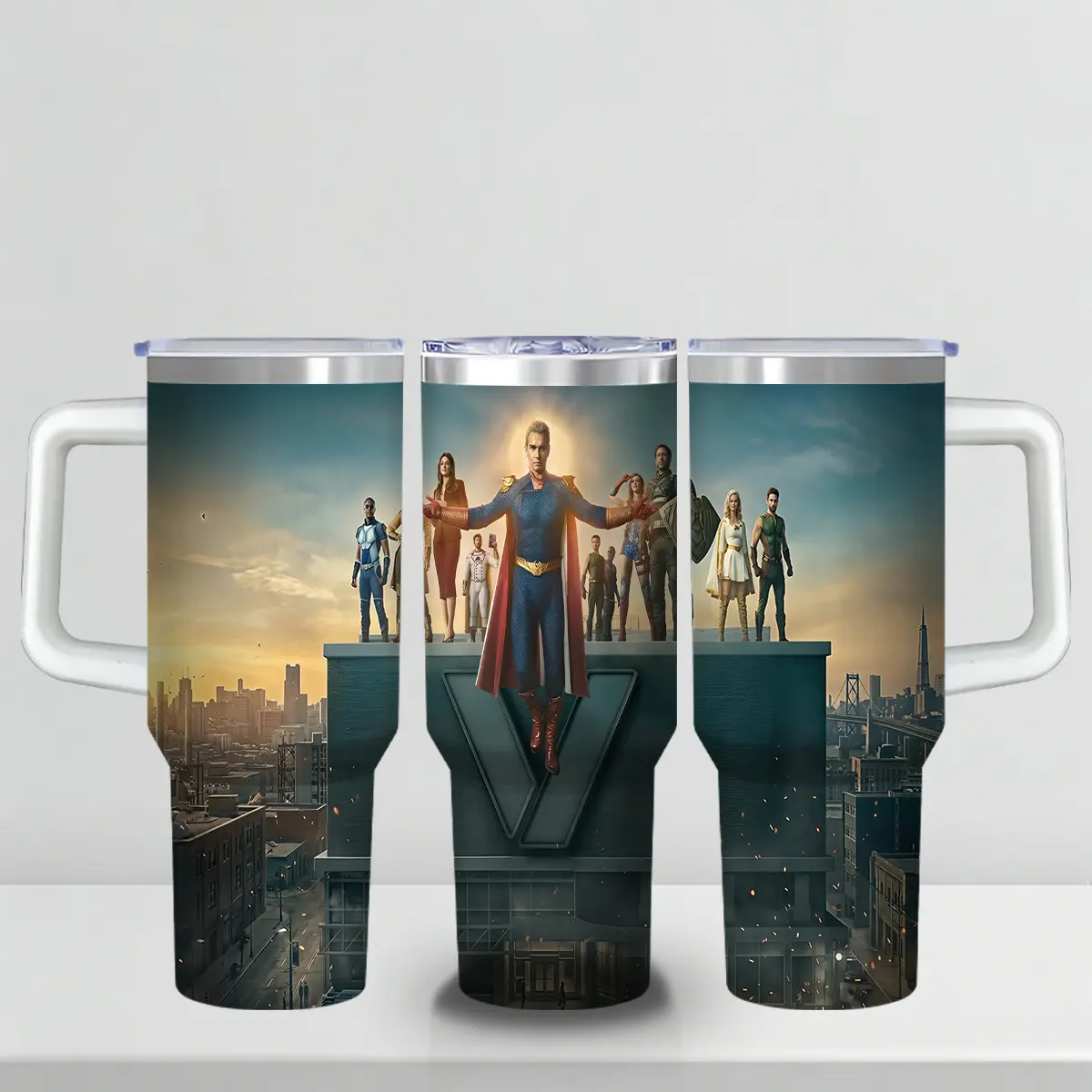 30 oz The Boys "The Seven" Series Insulated Tumbler, Ultimate Anti-Hero Travel Mug with Superhero Graphic, Comfort Handle & Straw, Perfect Gift for Sci-Fi Series Fans, Season 5 Celebration Edition