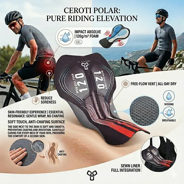 * 4D Agis Comfort Pad:120g/m² Agis Shield open-cell foam with perforated design, targeted shock reduction for sit bones, keeps dry and pain-free during 8+ hour rides.