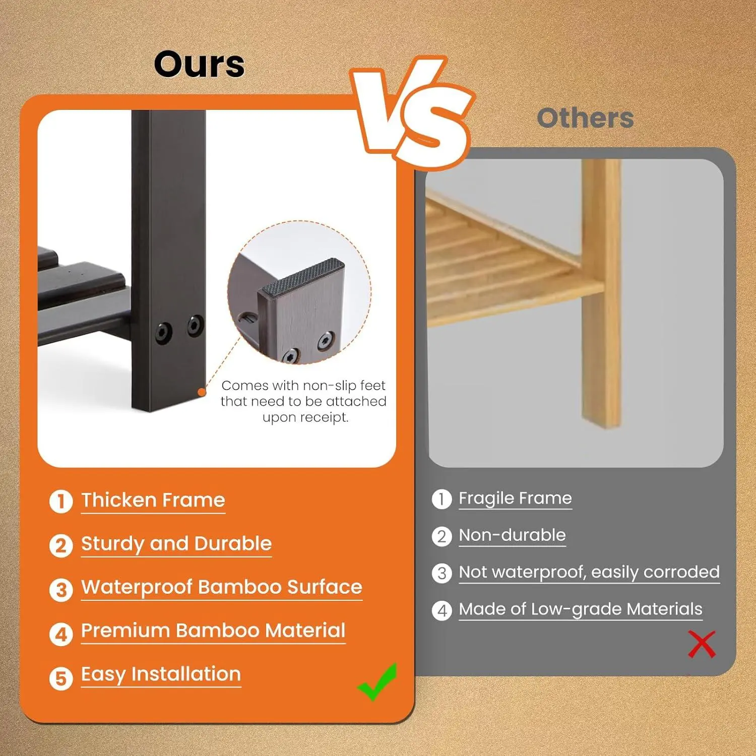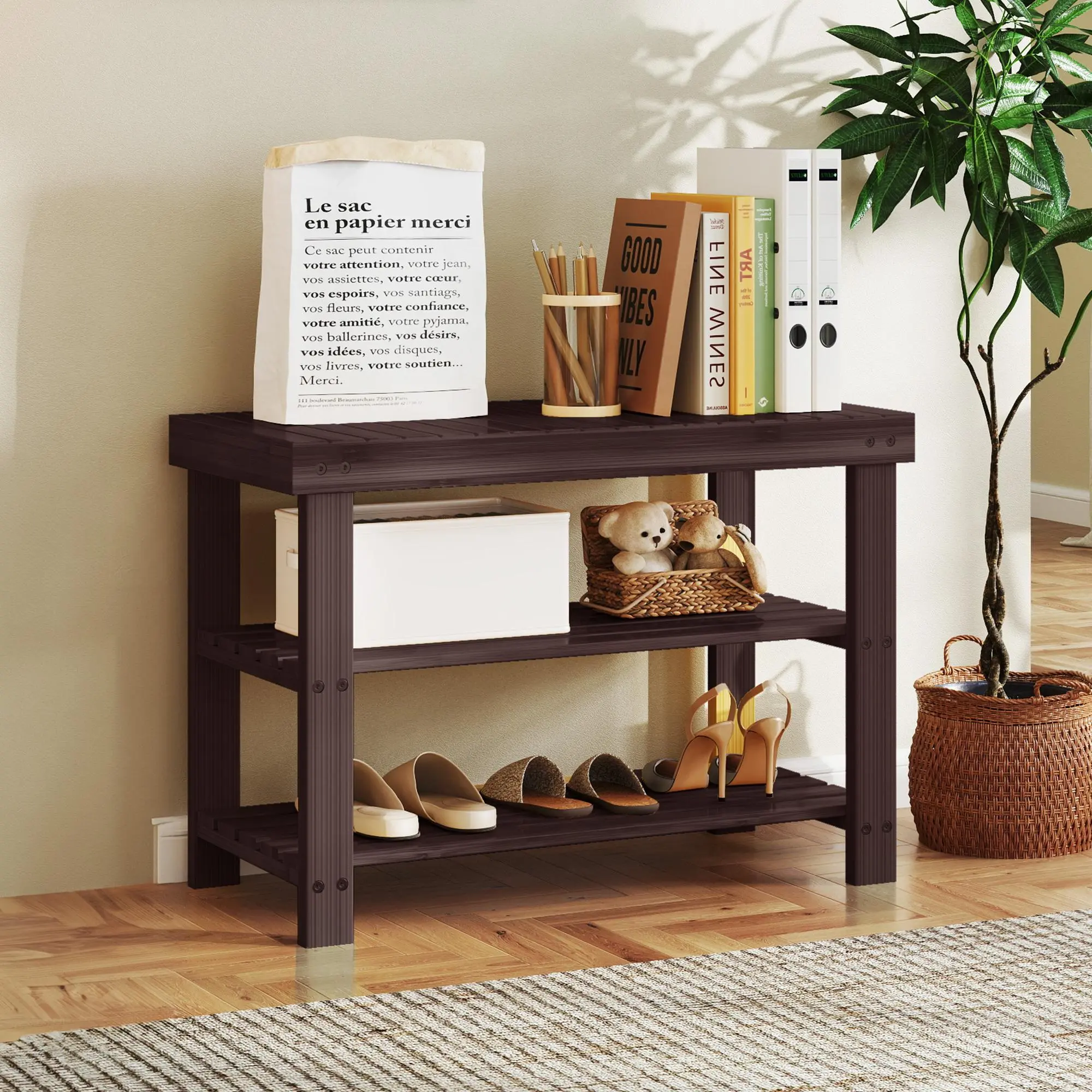 ✨ 3-Tier Bamboo Shoe Rack Bench – Perfect for your entryway, this bench combines seating with storage. Made from 100% natural bamboo, it's eco-friendly and durable. The waterproof finish resists wear and tear, making it easy to clean. Keep your home tidy and welcoming with this versatile piece.