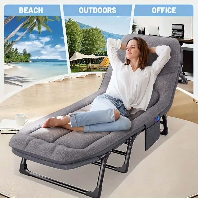 1-pack American style patio folding bed, outdoor patio furniture, comfortable ergonomic single recliner, patio chaise folding bed with mattress, garden, patio furniture, portable patio office camping
