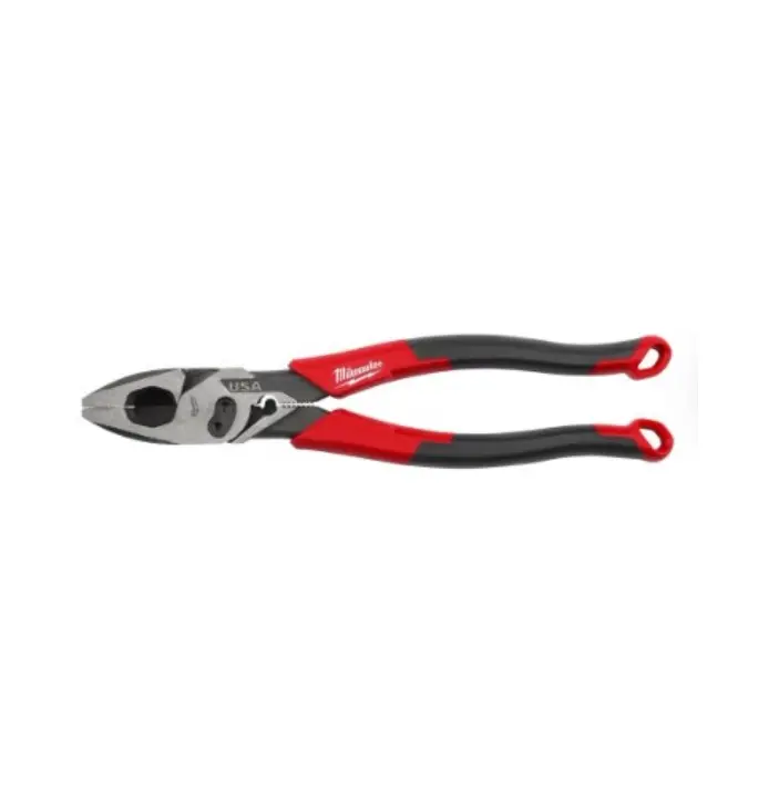 Our Milwaukee 9â Linemanâs Pliers with Crimper and Bolt Cutter (USA) are designed with the Electrician in mind, delivering the easiest cuts and a lasting edge. Our pliers are designed with an optimized pivot point to provide the best leverage for tough cuts through materials like wires and common hardware. Our Linemanâs cutting pliers deliver the confidence of a long cut life and maximum grip with laser-hardened edges and teeth. Our Linemanâs Pliers are engineered to deliver the smoothest open and close experience from the start, with no break-in period required. To complete common electrical applications with fewer tools, our pliers include an integrated crimper for insulated and non-insulated terminals and #6 and #8 bolt cutters. For additional versatility, our Linemanâs Pliers include a reaming head for ½-inch to 1-inch conduit and a straight fish tape puller. Our pliers are tether ready and offered in both dipped grip with a split-ring hole and comfort grip with a lanyard hole. Our Milwaukee Linemanâs Pliers are made in USA with best-in-class manufacturing technology and USA-sourced materials, including durable, press-forged steel, and are backed by a complete Lifetime Guarantee.