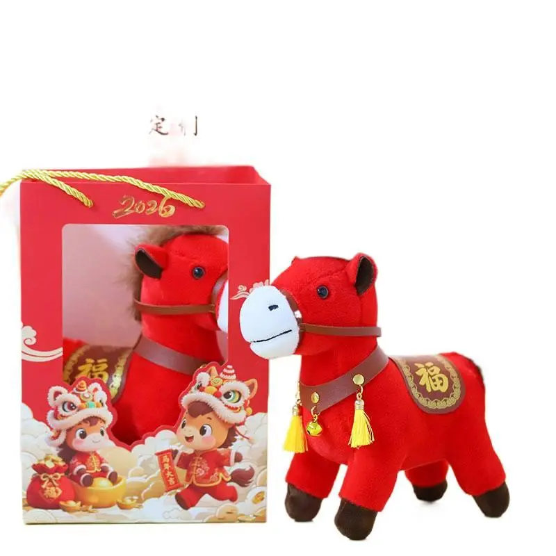 2026 Year of the Horse plush toy, zodiac red horse stuffed doll, company annual meeting event gift, good fortune
