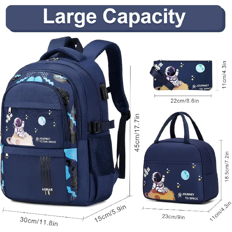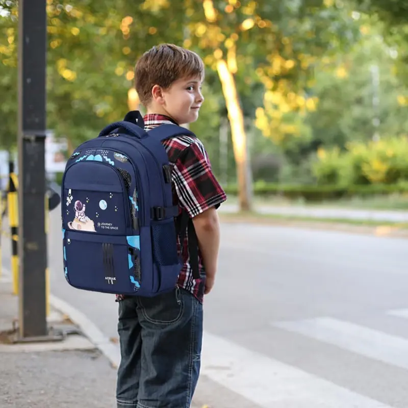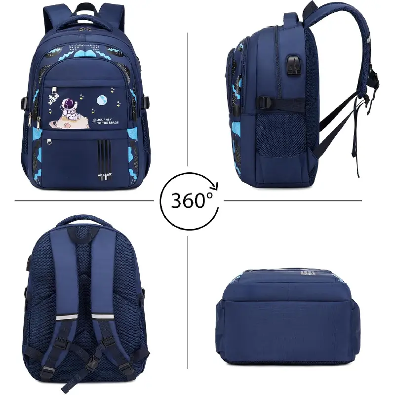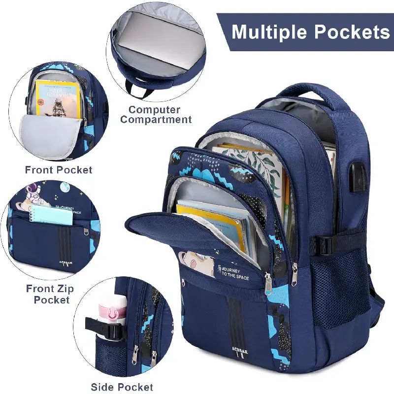 [WATERPROOF & DURABLE]Our school bags for boys outside is made of premium lightweight 900D Oxford fabric and quilted polyester linear, waterproof, colourfast, odorless, easy to clean and.It can protect all items in the bookbag from drizzle.High-quality workmanship and smooth zippers.What's more, we have an bonus exquisite astronaut pendant, which is a well-deserved choice for.