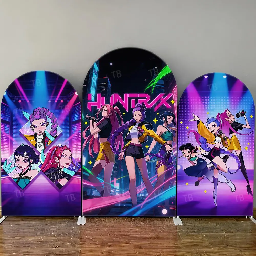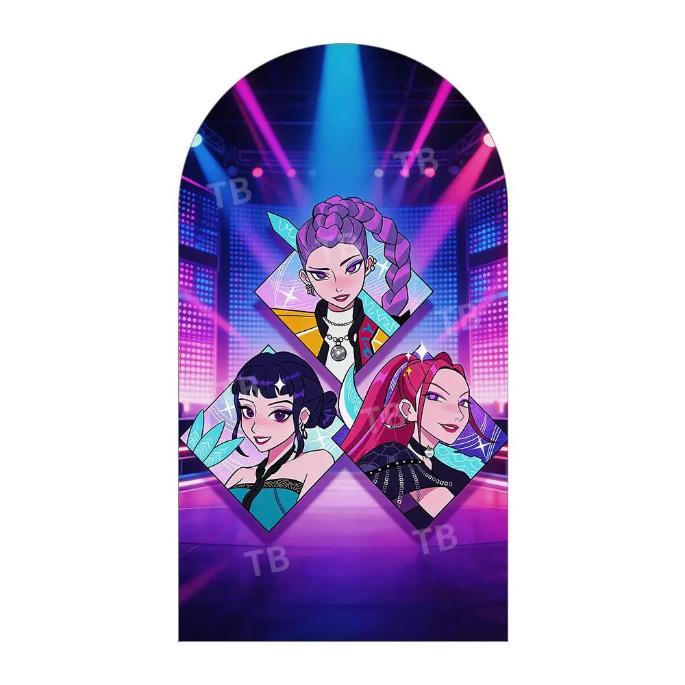 Hunters Neon City Arch Backdrop Cover Set for Anime Birthday Party Decor