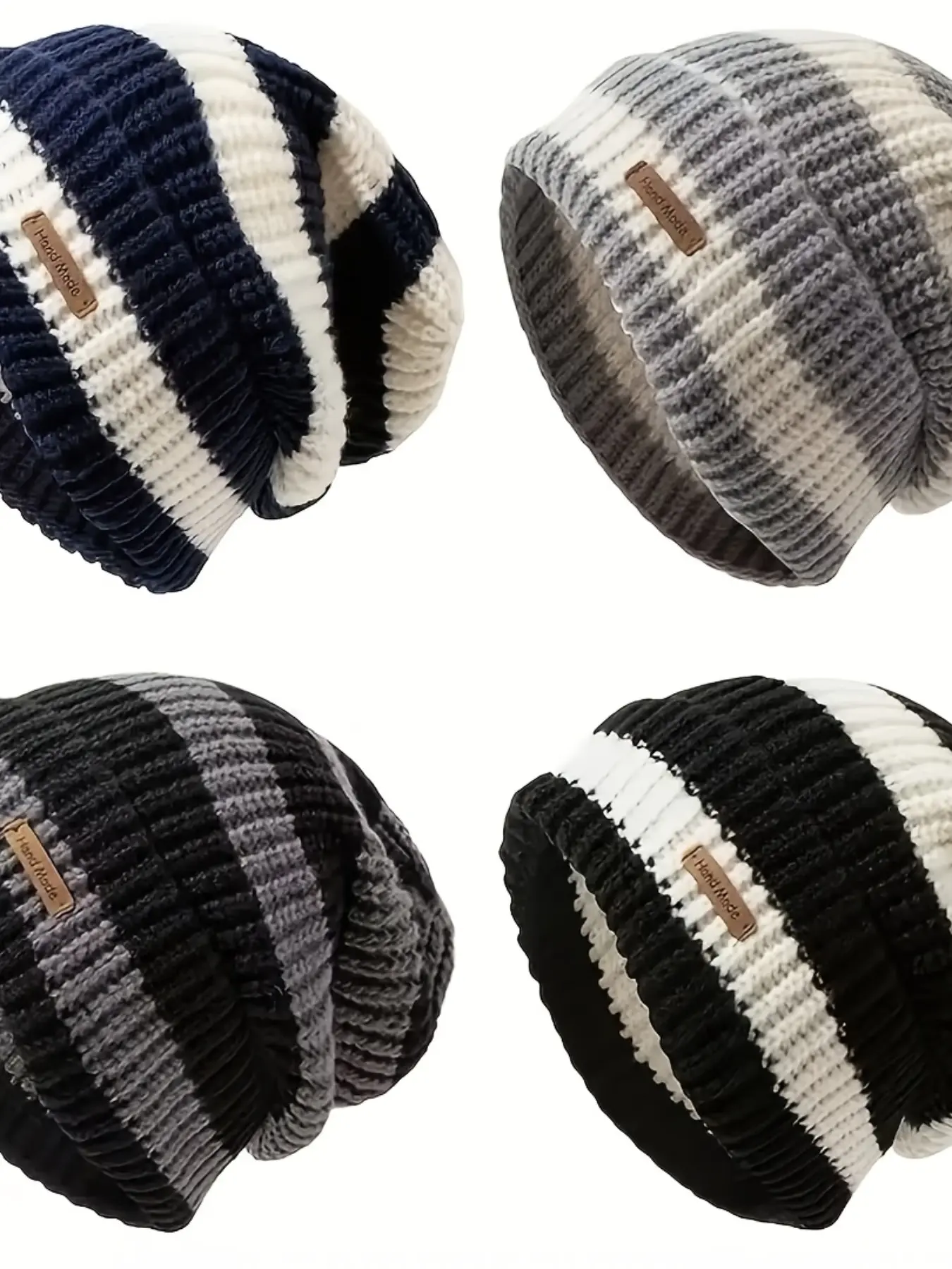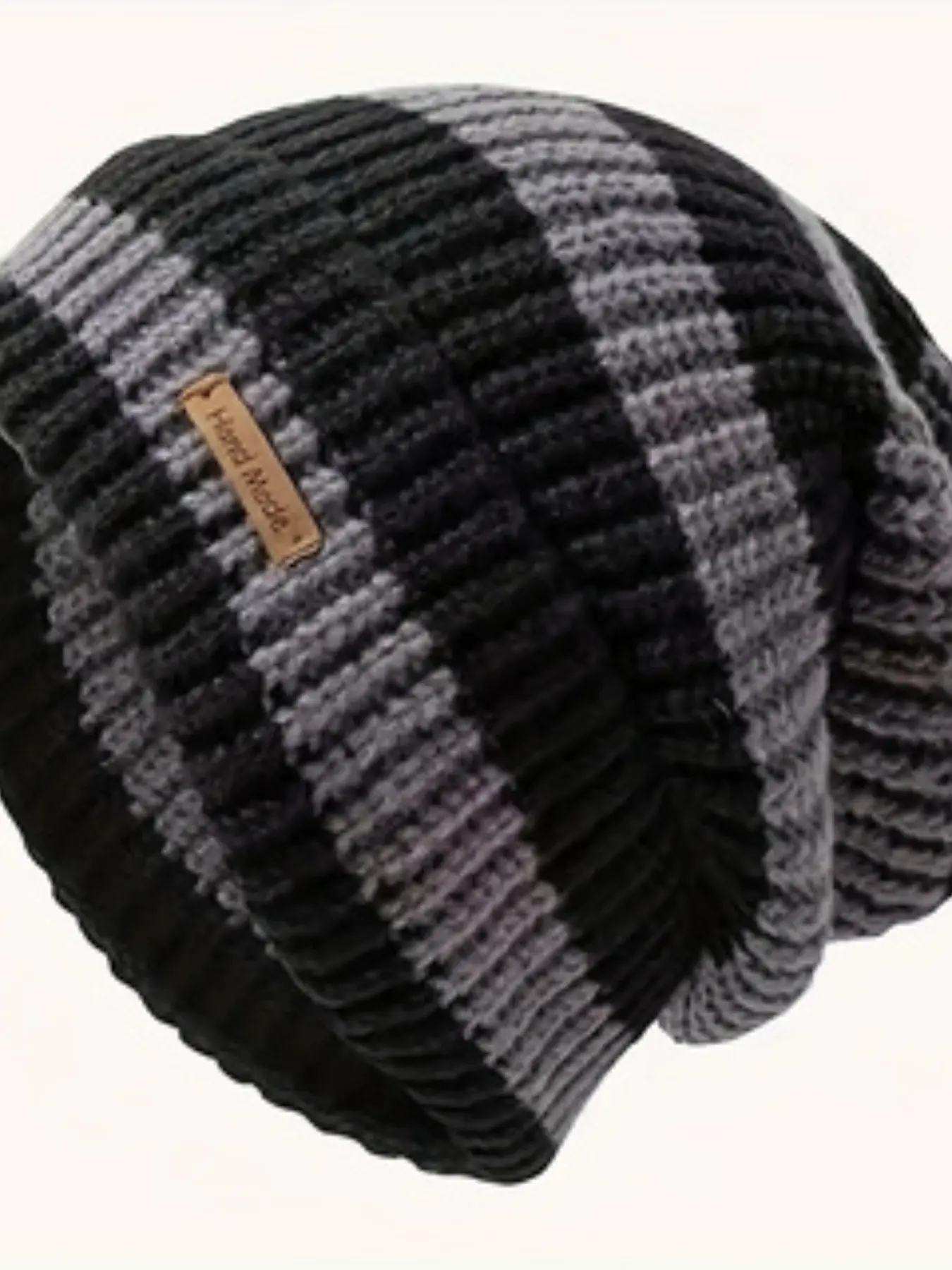 Unisex Striped Warm Lightweight Hat, Elastic and Easy to Care, Versatile Letter Knit Cap, Perfect for All Seasons
