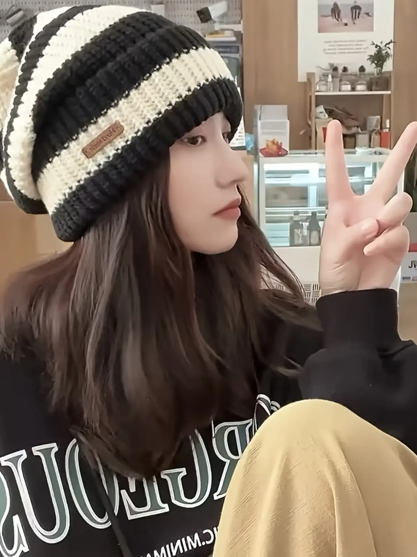 5. Unisex Striped Warm Lightweight Hat, Elastic and Easy to Care, Versatile Letter Knit Cap, Perfect for All Seasons