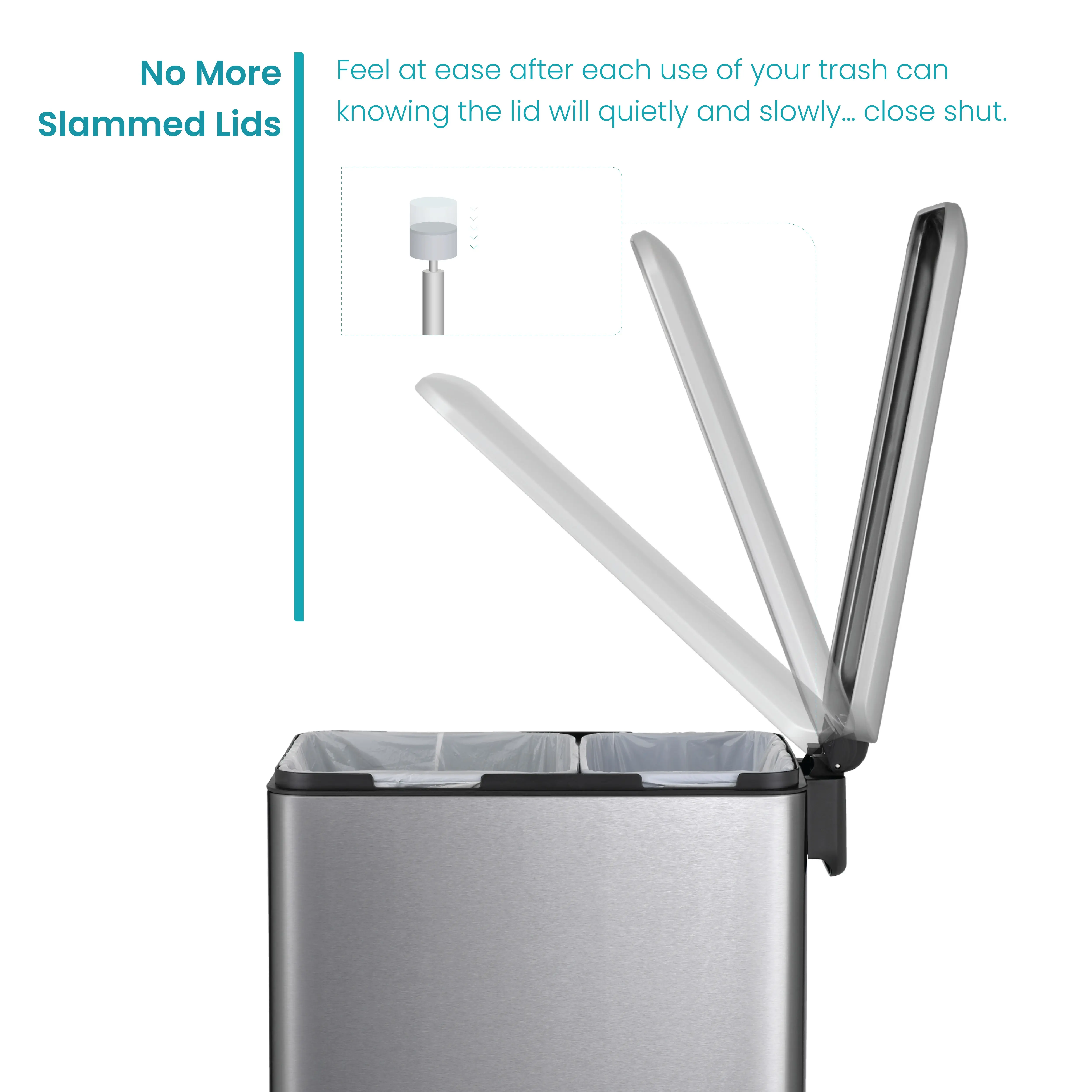 Home Zone Living 13 Gallon Dual Compartment Stainless Steel Kitchen Trash Can with Step Pedal and Soft Close Lid, Silver