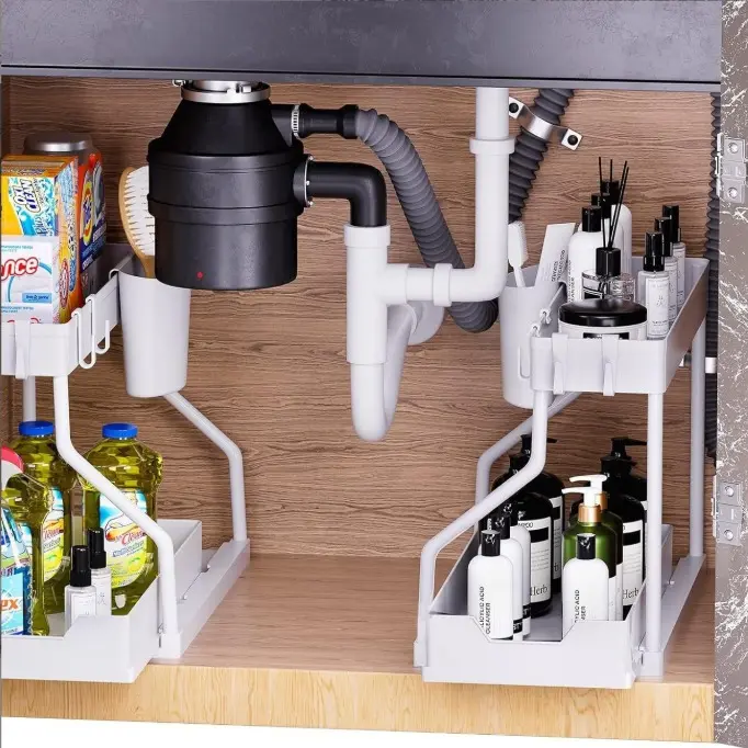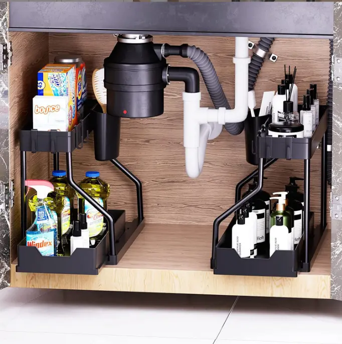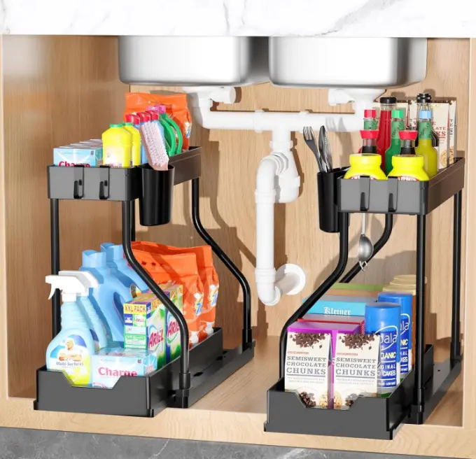 ·2-Tier Design: Maximizes vertical storage space with two sliding baskets that provide easy access to items stored in the back of cabinets