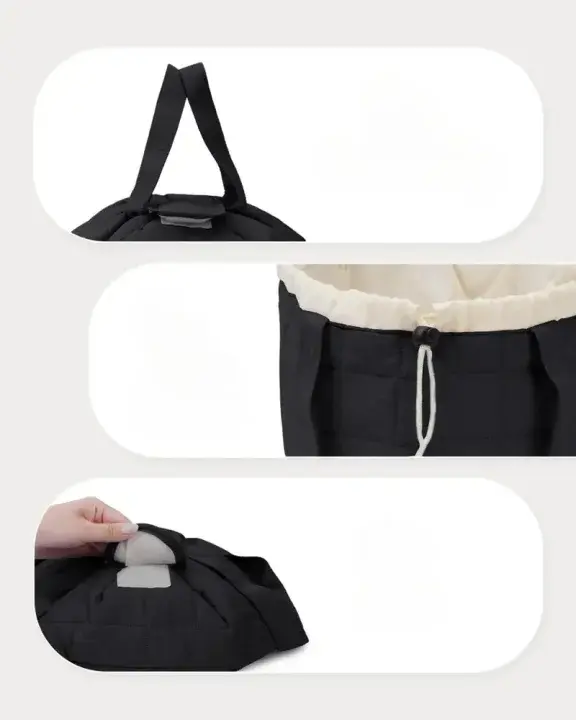 ·Convenient Design. Front flap velcro closure and double drawstrings make it easy to close quickly and firmly. Barrel-like construction protect items from sliding out when packing. 2 Sturdy handles are convenient to carry