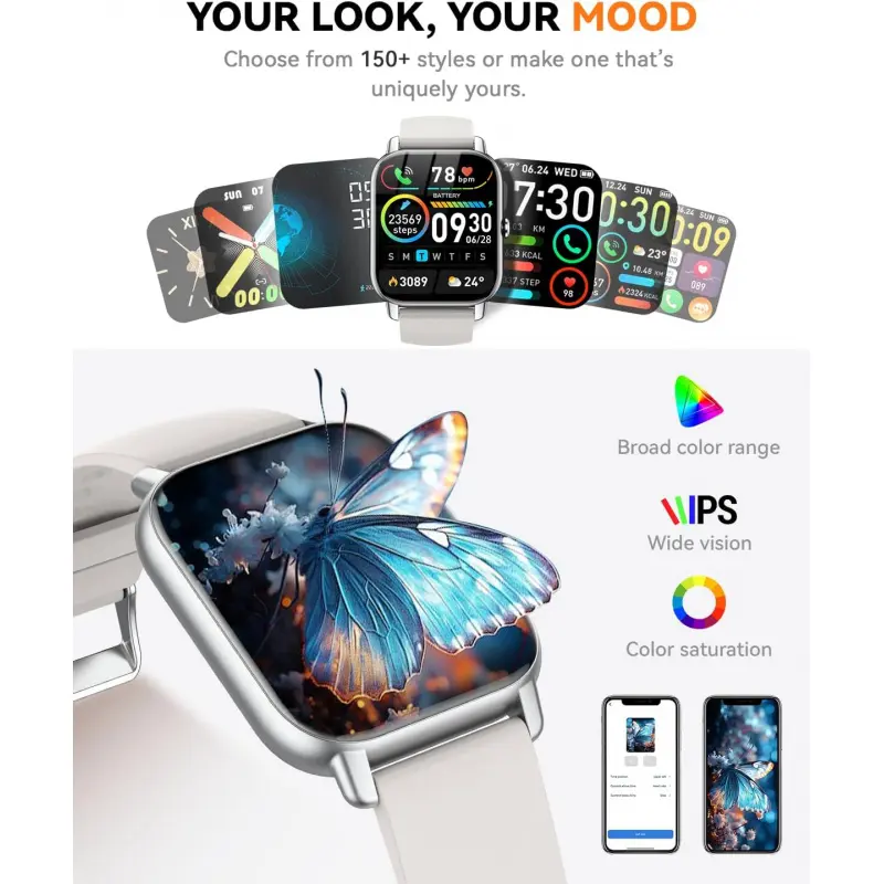 Multifunctional & Widely Compatible:**Effortlessly manage camera/music/weather/stopwatch functions-all from your wrist.Compatible with iPhone (iOS 9.0+) and Android (5.0+), this smartwatch ensures seamless connectivity for daily convenience.More than a fitness tracker, it's a stylish all-in-one wearable for smarter, healthier living