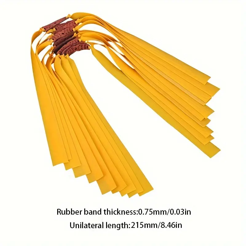 ·10 pieces of 0.75mm thick latex slingshot belts. These third-generation standard belts are designed for hunting and fishing. They offer high elasticity and durability, making them ideal for outdoor activities. The anti-slip feature ensures a secure grip. Perfect for anti-freezing conditions, these belts are sturdy and thick, providing reliable performance.