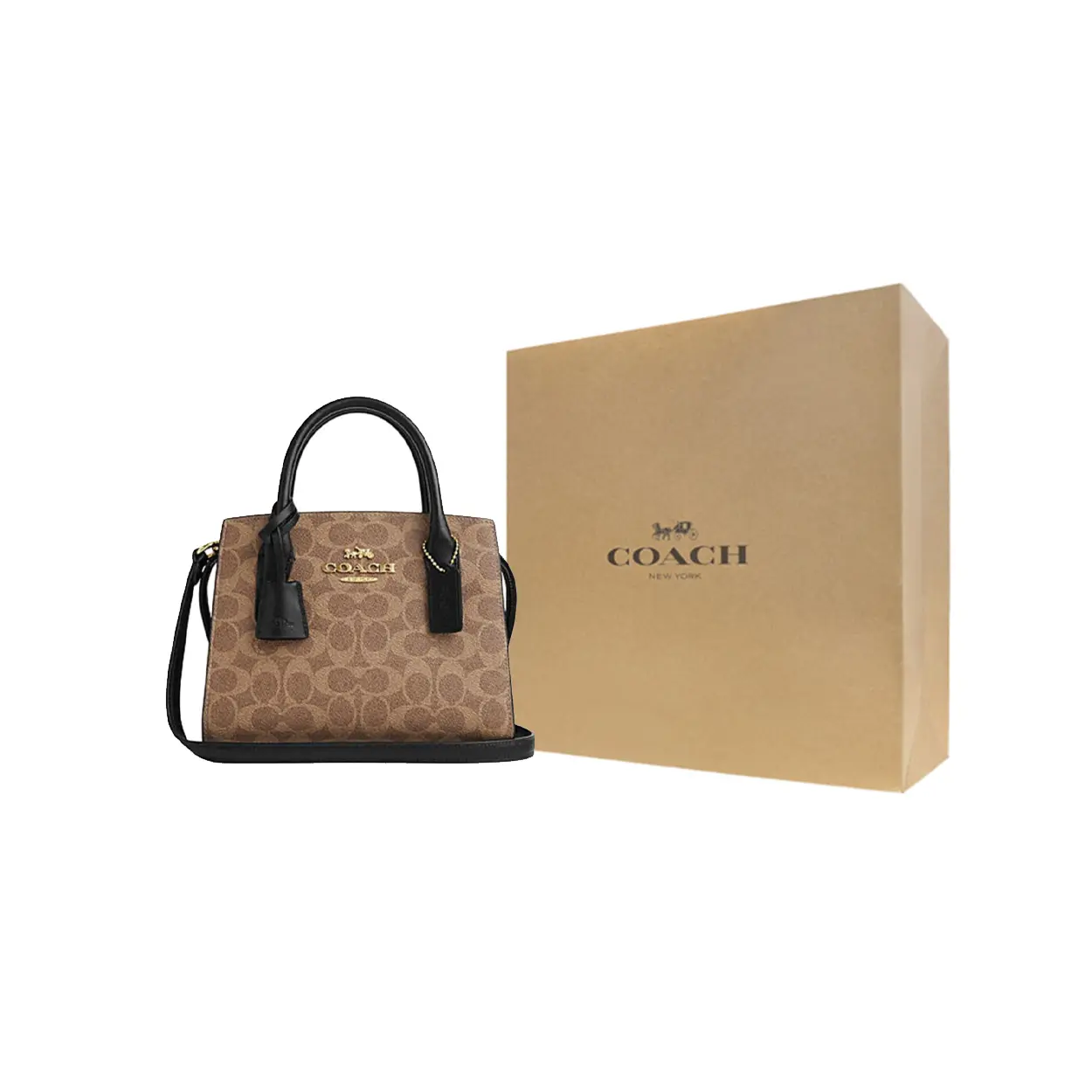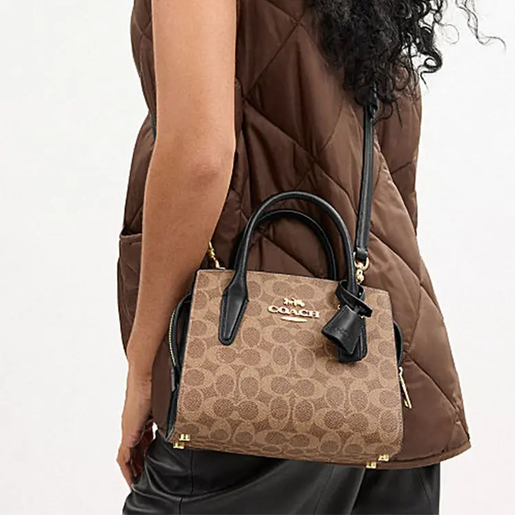 Coach Andrea Carryall 22 Handbag for Women – Satchel Style in Tan and Black