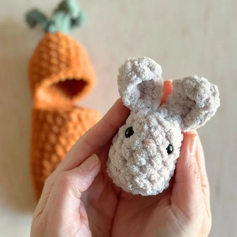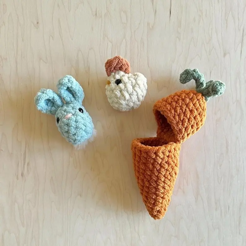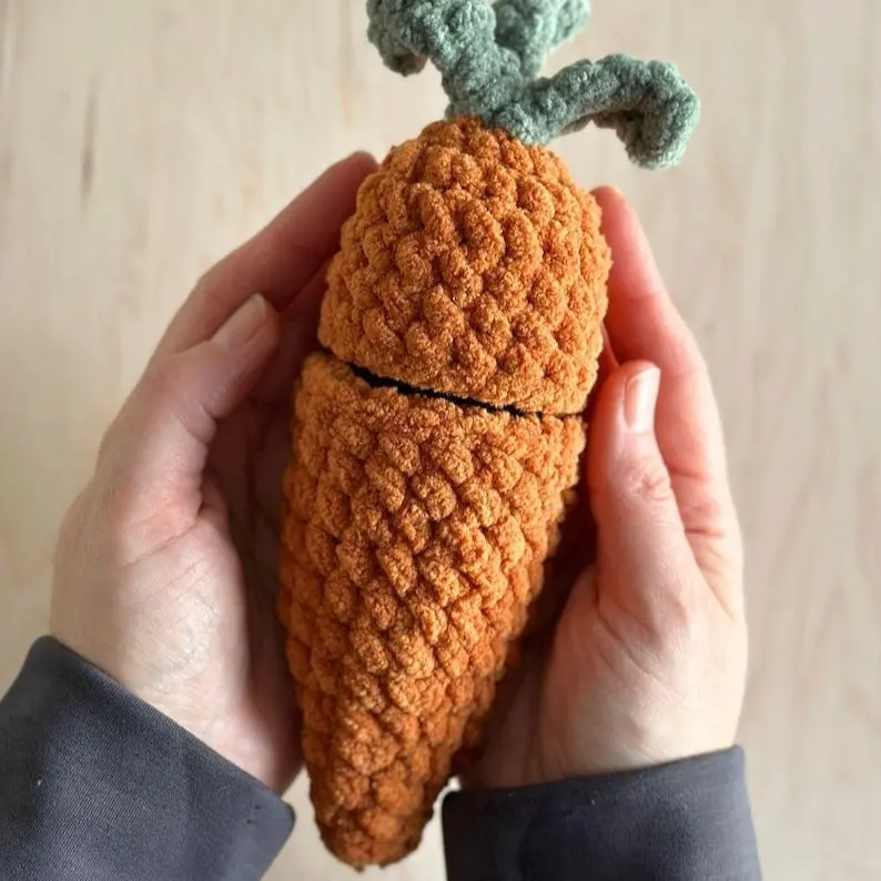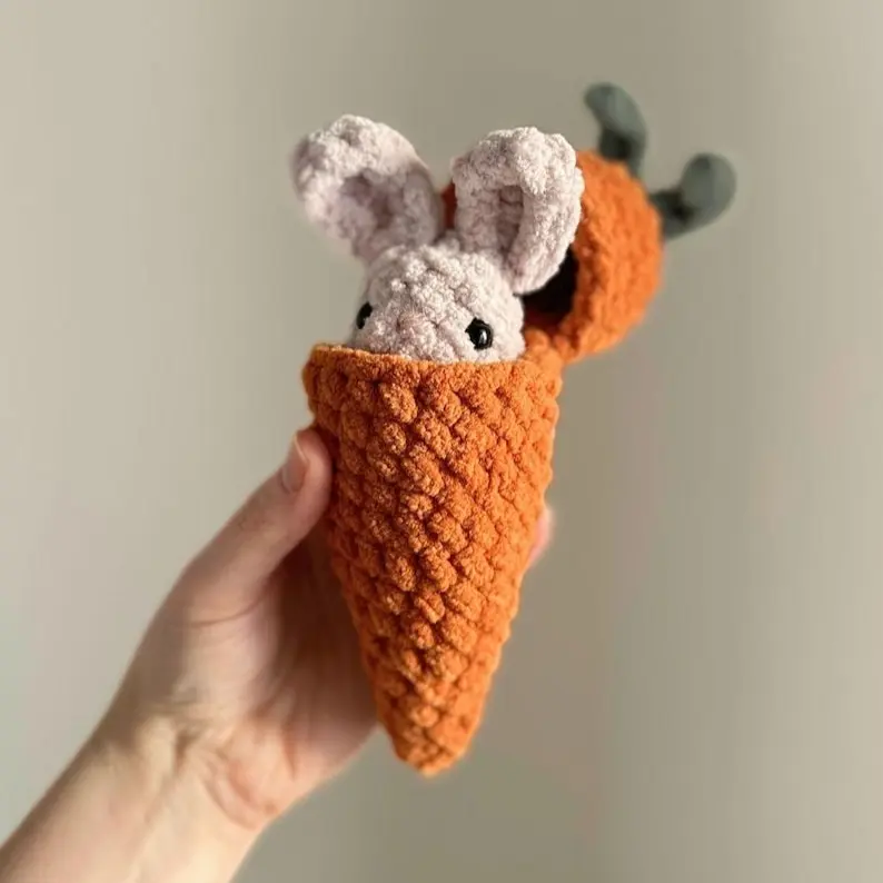 ·This crochet carrot features a creative design that hides a baby animal inside. Perfect for adding a playful touch to your collection. The carrot's shape and the hidden element make it a standout piece. Ideal for those who love unique, handcrafted items.