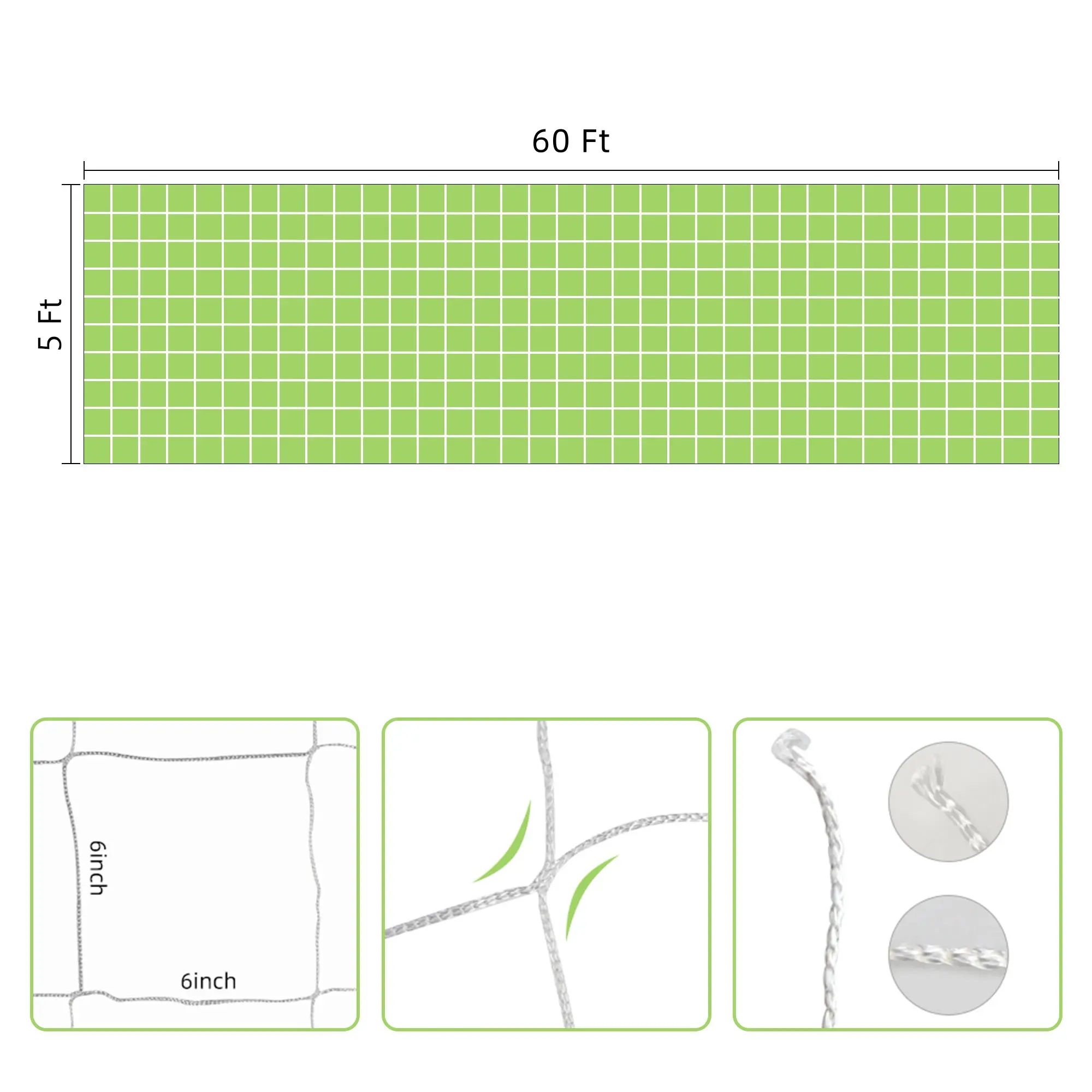 Generous Dimensions: The package includes a 5ft x 60ft garden plant grow net, with an additional option of a 5ft x 30ft size. Both sizes can be easily cut to a desired length without fraying, providing flexibility to fit different gardening needs.
