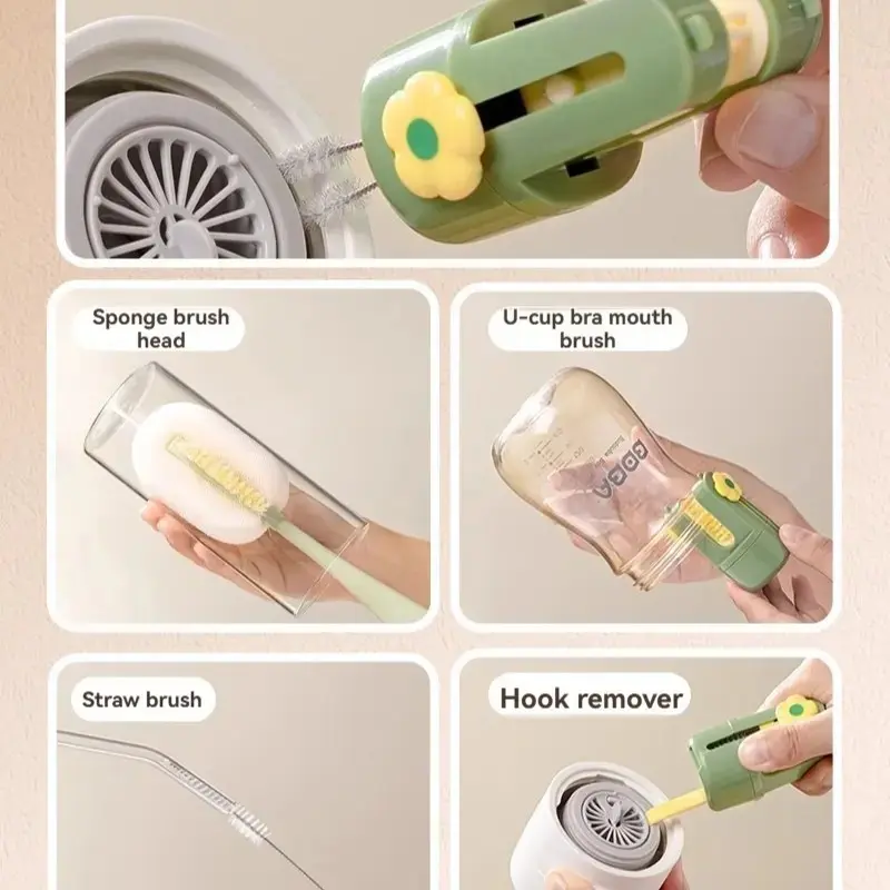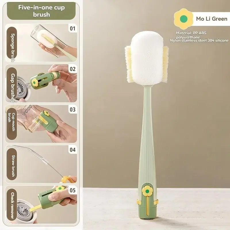 【Multi-functional tool】: This cleaning brush combines five essential functions for various types of cups and bottles, enhancing your cleaning efficiency.