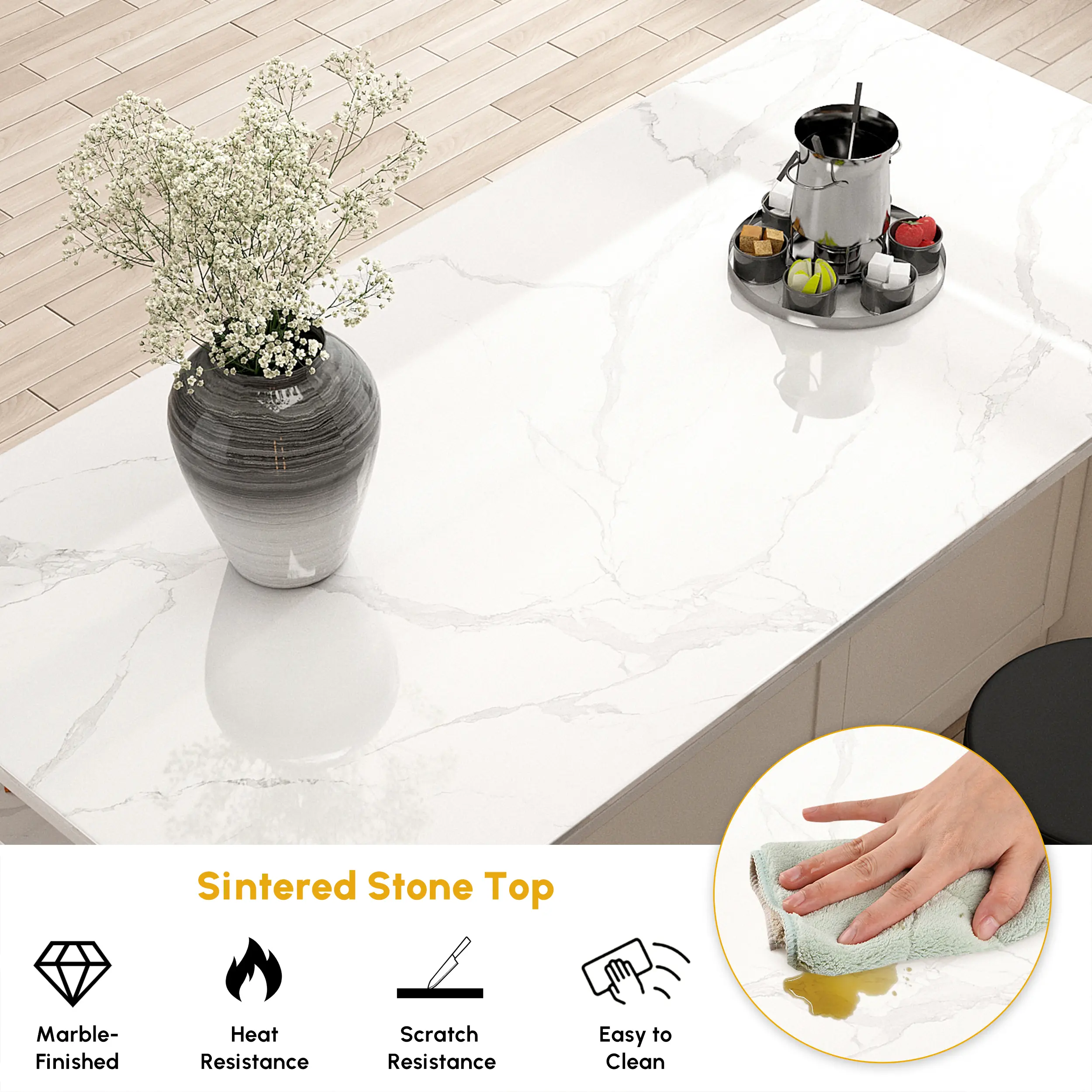 ·Comes With Two Top Options, Letting You Choose Between Sintered Stone Or Wood For Different Styles Or Uses